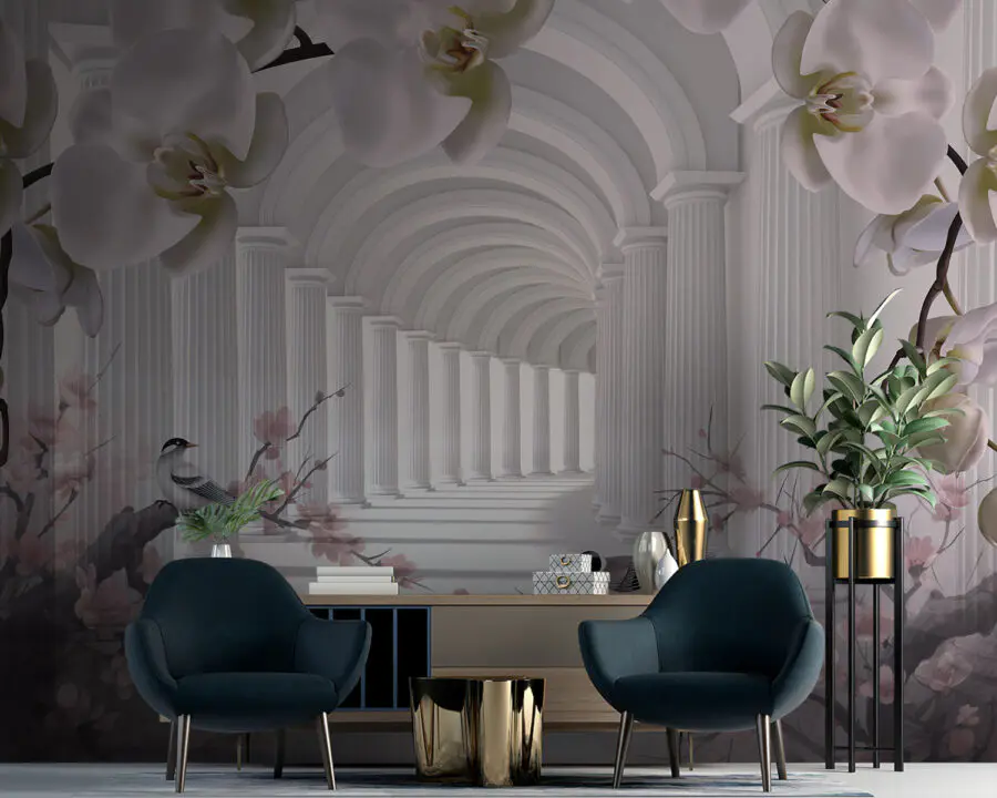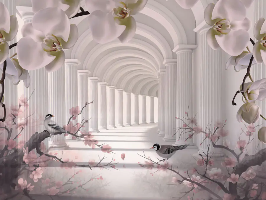 Stellen Sie sich vor, Sie schreiten durch einen eleganten Torbogen, umgeben von blühenden Blumen und leisem Vogelgezwitscher – aber in Ihrem eigenen Wohnzimmer! Diese Fototapete “Eleganter Torbogen mit blühenden Blumen” verwandelt jeden Raum in eine verträumte Oase. Stellen Sie sich die cremefarbenen Säulen, die zarten Blüten und die charmanten kleinen Vögel vor, die eine friedliche Atmosphäre schaffen. Wenn Sie den Raum betreten, ist es, als würden Sie einen Märchengarten betreten. Perfekt für alle, die einen Hauch von Natur und einen Hauch von klassischer Schönheit lieben. Man spürt förmlich die sanfte Brise und nimmt den zarten Duft der Blumen wahr. Stellen Sie sich vor, Sie lassen sich mit einer Tasse Tee auf Ihr Sofa sinken und fühlen sich wie in einer anderen Welt. Dieses Wandbild mit seiner ruhigen und anmutigen Ausstrahlung lässt Sie tief durchatmen und entspannen. Ein wahrer Blickfang für jede Wand!