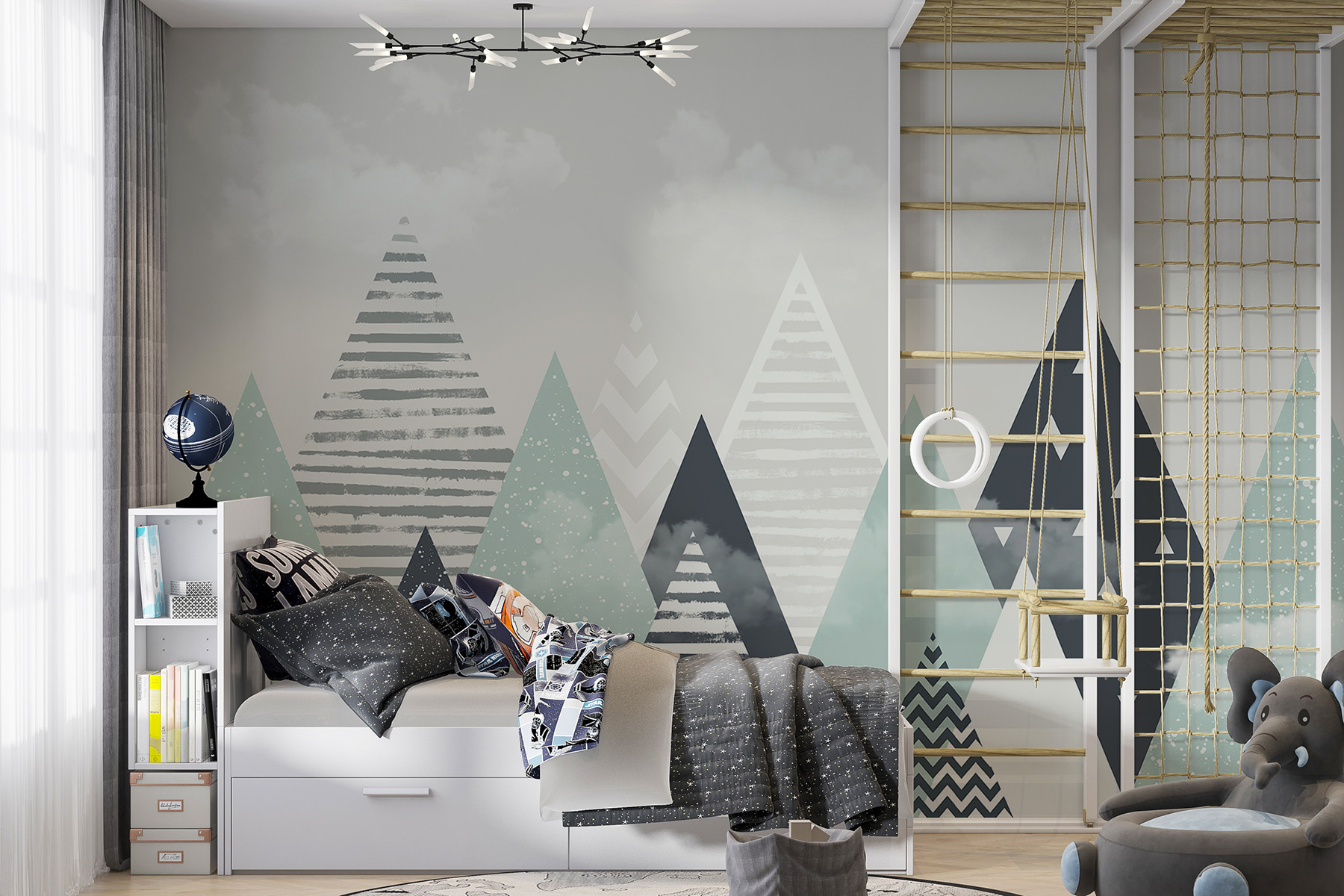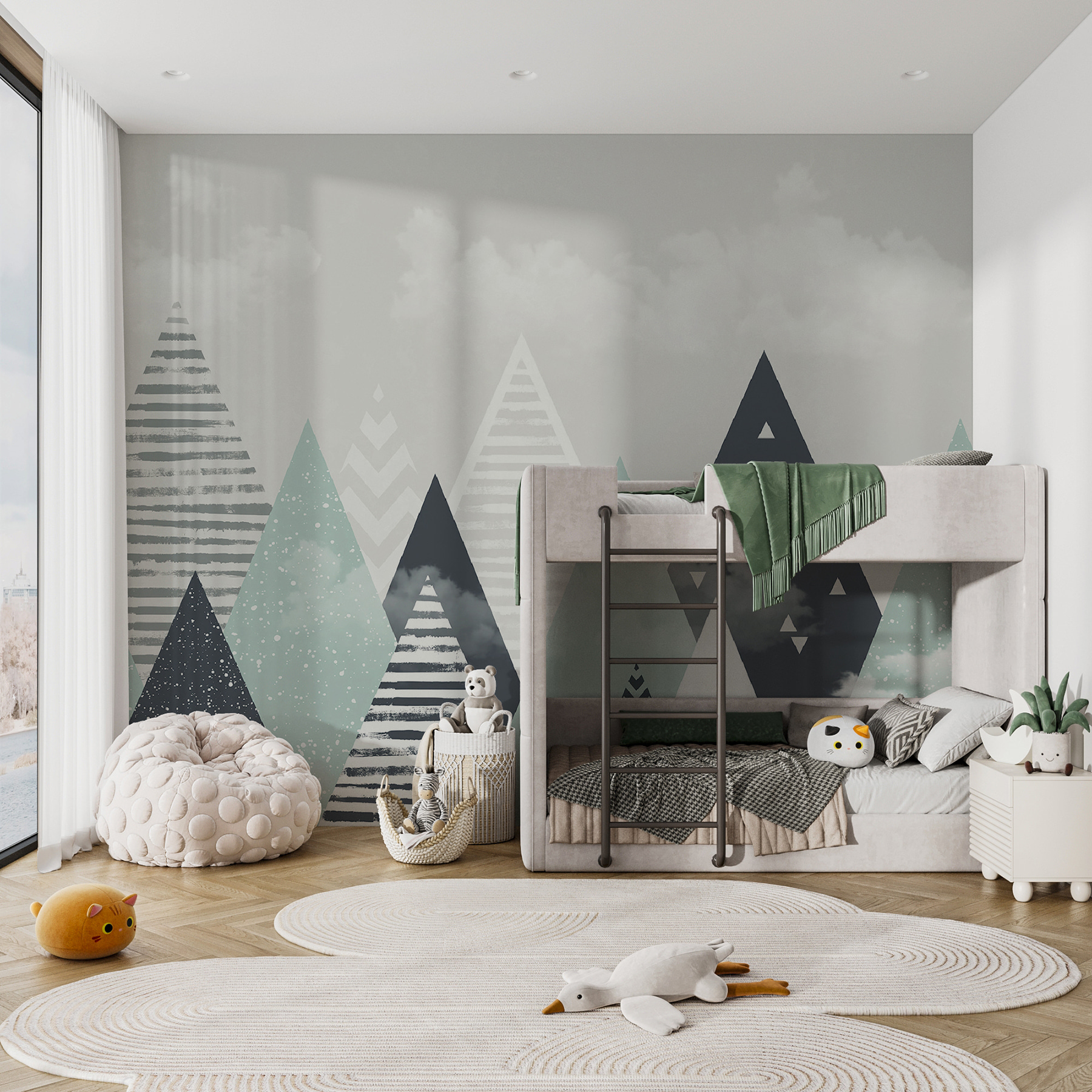 Es ist ein Wandbild, das sagt: “Hey, lass uns träumen!” Ob beim Kuscheln während einer Gute-Nacht-Geschichte oder beim Spielen mit dem Lieblingsspielzeug, dieses Wandbild schafft eine beruhigende und kreative Atmosphäre. Sie können fast das Flüstern von Geschichten und Abenteuern hören, die sich in Ihrer gemütlichen, mit Chevron-Mustern verzierten Ecke abspielen werden. Verwandeln Sie den Raum Ihres Kindes in ein Wunderland, in dem es seiner Fantasie freien Lauf lassen kann!