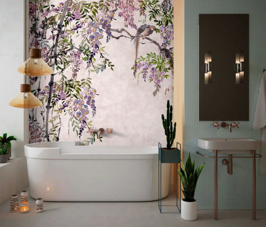 Dieses “Wandgemälde mit Vögeln auf einem Ast” müssen Sie sich unbedingt ansehen! Stellen Sie sich vor, Sie trinken Ihren Morgenkaffee unter einem blühenden Baldachin, während Ihnen zarte Vögel von ihren Zweigen aus ein Ständchen bringen. Das ist die Stimmung, die dieses Wandbild vermittelt – friedlich und bezaubernd. Die zarten Flieder- und Grüntöne sind wie ein sanftes Frühlingsgeflüster, das jedem Raum Leben einhaucht.