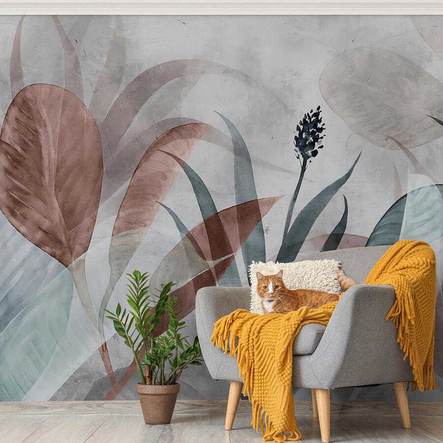 Verwandeln Sie jeden Raum in einen ruhigen Rückzugsort mit dieser reizvollen Wandtapete mit abstrakten Blättern in sanften Erdtönen. Stellen Sie sich vor, Sie treten in eine gemütliche Ecke, in der sich die ruhigen Farben niederlassen und jeden Moment wie eine sanfte Brise wirken lassen. Die skurrilen Muster scheinen fast über die Wand zu tanzen und flüstern Geschichten über die stille Schönheit der Natur. Es eignet sich perfekt für ein Wohnzimmer oder eine ruhige Leseecke und lädt zur Entspannung ein – man denke nur an gemütliche Nachmittage mit einem guten Buch und einer Tasse Tee. Es ist ein Stück, das Freude und Tagträume weckt und dabei mühelos stilvoll bleibt. Wer würde sich nicht gerne in einer solch bezaubernden Aussicht verlieren?