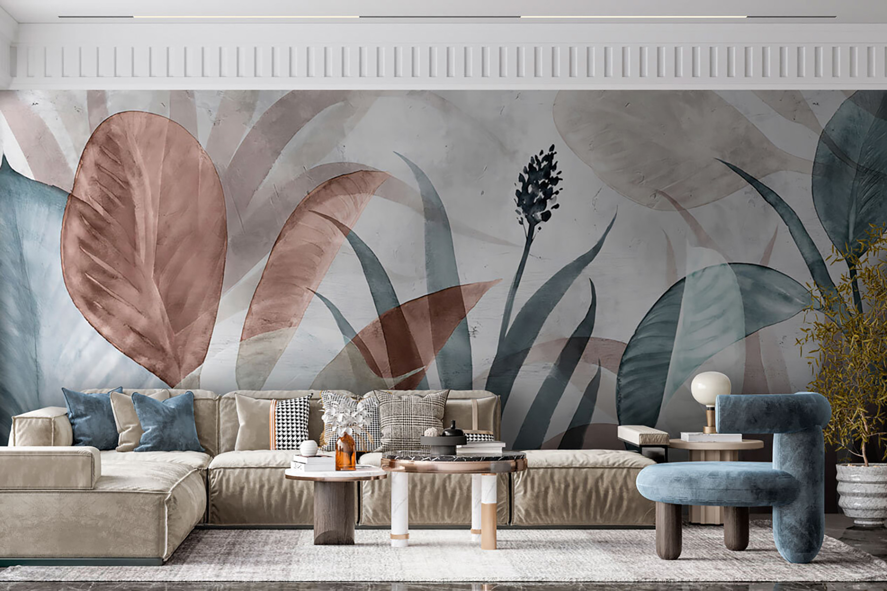 Verwandeln Sie jeden Raum in einen ruhigen Rückzugsort mit dieser reizvollen Wandtapete mit abstrakten Blättern in sanften Erdtönen. Stellen Sie sich vor, Sie treten in eine gemütliche Ecke, in der sich die ruhigen Farben niederlassen und jeden Moment wie eine sanfte Brise wirken lassen. Die skurrilen Muster scheinen fast über die Wand zu tanzen und flüstern Geschichten über die stille Schönheit der Natur. Es eignet sich perfekt für ein Wohnzimmer oder eine ruhige Leseecke und lädt zur Entspannung ein – man denke nur an gemütliche Nachmittage mit einem guten Buch und einer Tasse Tee. Es ist ein Stück, das Freude und Tagträume weckt und dabei mühelos stilvoll bleibt. Wer würde sich nicht gerne in einer solch bezaubernden Aussicht verlieren?