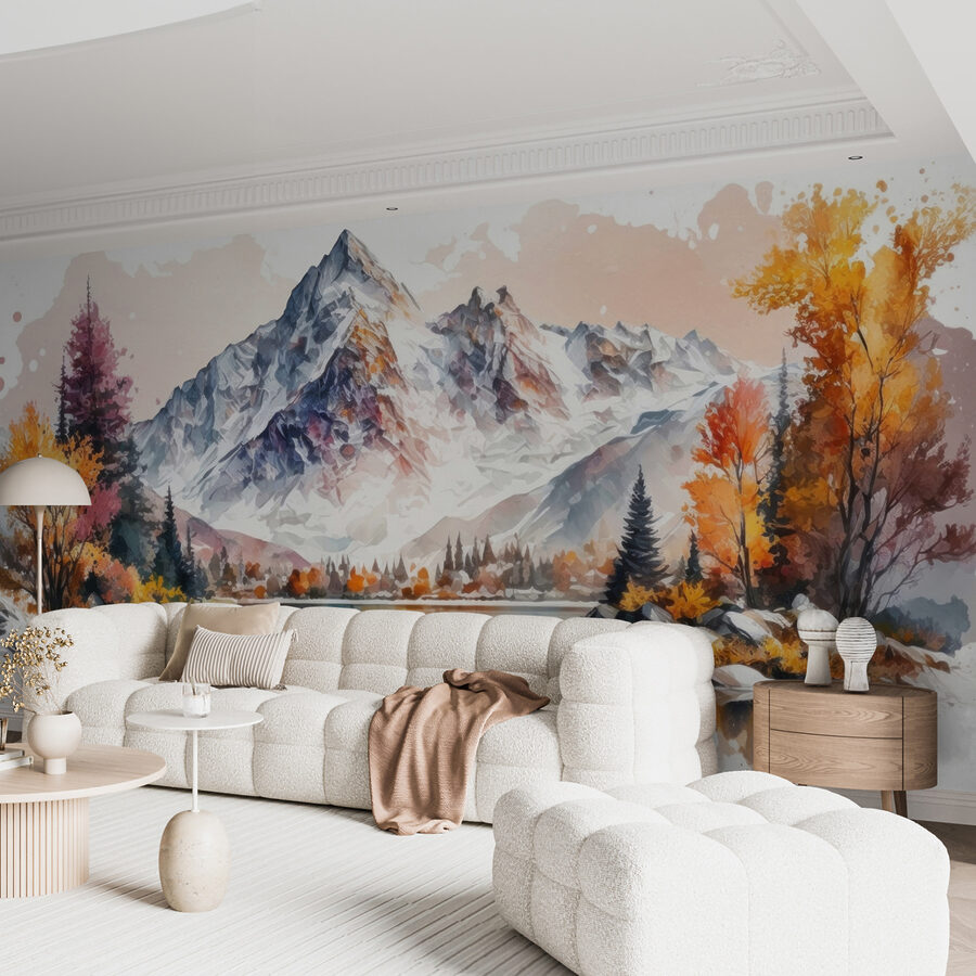 Stellen Sie sich vor, Sie betreten einen Raum und fühlen sich sofort in ein skurriles Wunderland versetzt – diese Fototapete macht genau das. Mit dem bezaubernden Gemälde eines Baumes mit leuchtend orangefarbenen Blättern ist es, als hätte der Herbst ein Upgrade bekommen und wäre ins Haus gezogen! Perfekt für ein Kinderzimmer oder überall dort, wo Sie ein wenig magische Berglandschaft einstreuen möchten – im Ernst, dieses Kunstwerk könnte einen Yeti in seinen Bann ziehen. Der Aquarelleffekt sorgt für eine verträumte Stimmung, die sich fast wie eine sanfte Umarmung der Natur anfühlt. Ob Sie nun Kaffee trinken oder eine geheime Teeparty mit Plüschtieren veranstalten, dieses Wandbild ist eine farbenfrohe Kulisse, die Gelassenheit und Abenteuer zugleich ausstrahlt.