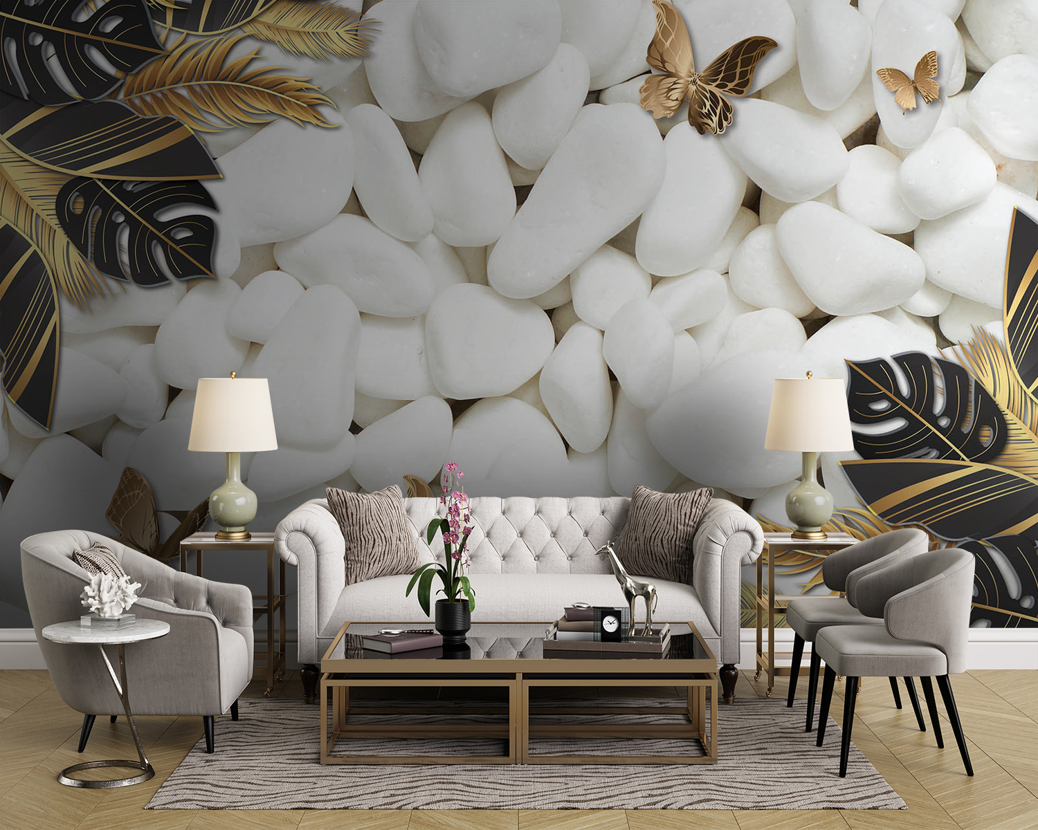 Verwandeln Sie jeden Raum mit dem fesselnden Charme des Wandbildes Nature’s Calm in White and Black. Stellen Sie sich vor, Sie treten in eine ruhige Welt ein, in der makellose weiße Steine und ätherische Schmetterlinge eine friedliche Kulisse bilden. Das Wandbild lädt zur Ruhe ein – perfekt für eine gemütliche Leseecke oder eine schwierige Wand, die einfach ein bisschen mehr braucht. Stellen Sie sich vor, Sie machen es sich mit Ihrem Lieblingsbuch gemütlich, umgeben von diesem beruhigenden Design, während die Welt draußen verblasst. Es ist ein Hauch von Natur im Haus, ohne Unordnung oder Aufregung. Wer wünscht sich nicht eine kleine tägliche Erinnerung an die Ruhe? Und der verspielte Kontrast sorgt für einen Hauch von Persönlichkeit und macht sie zum Gesprächsanlass. Perfekt für alle, die die Magie der Natur zu schätzen wissen – und das direkt im Wohnzimmer!