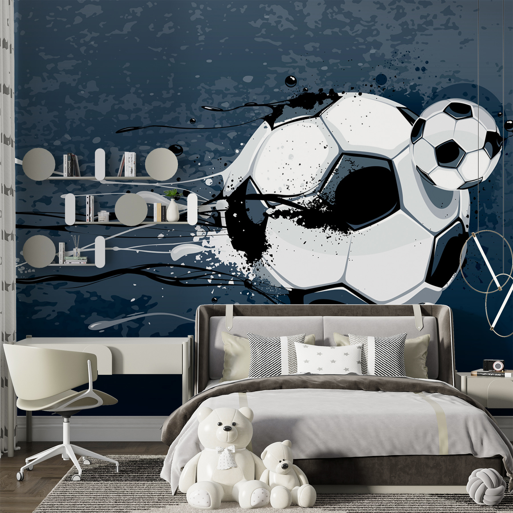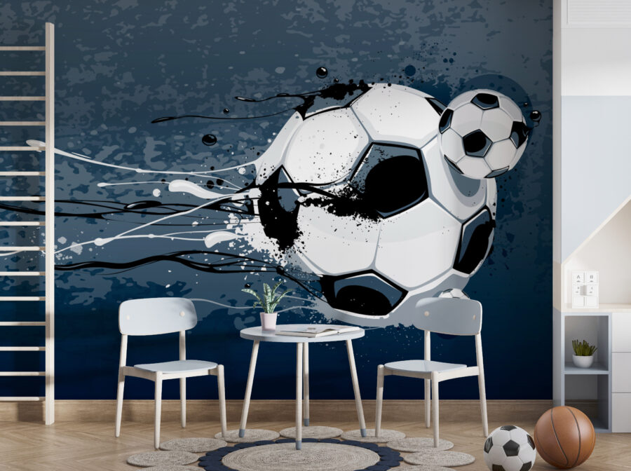 Verscheuchen Sie die Langeweile mit dieser großartigen Fototapete! “Soccer ball splashes into action” fängt den aufregenden Rausch des Spiels ein und ist damit perfekt für das Zimmer eines jungen Sportlers. Stellen Sie sich vor, Ihr Kind wacht vor dieser lebhaften Szene auf und ist bereit, seine Turnschuhe zu schnüren. Es ist lustig, energiegeladen und verspielt, ohne zu übertrieben zu sein. Stellen Sie sich all die imaginären Spiele vor, die sich vor diesem gewagten Hintergrund abspielen könnten – lassen Sie Ihrer Kreativität freien Lauf! Außerdem könnte es einen zukünftigen Fußballstar inspirieren oder zumindest ein paar lebhafte Debatten über die besten Mannschaften auslösen. Wer liebt nicht ein Wandgemälde, das alle zum Lächeln bringt?