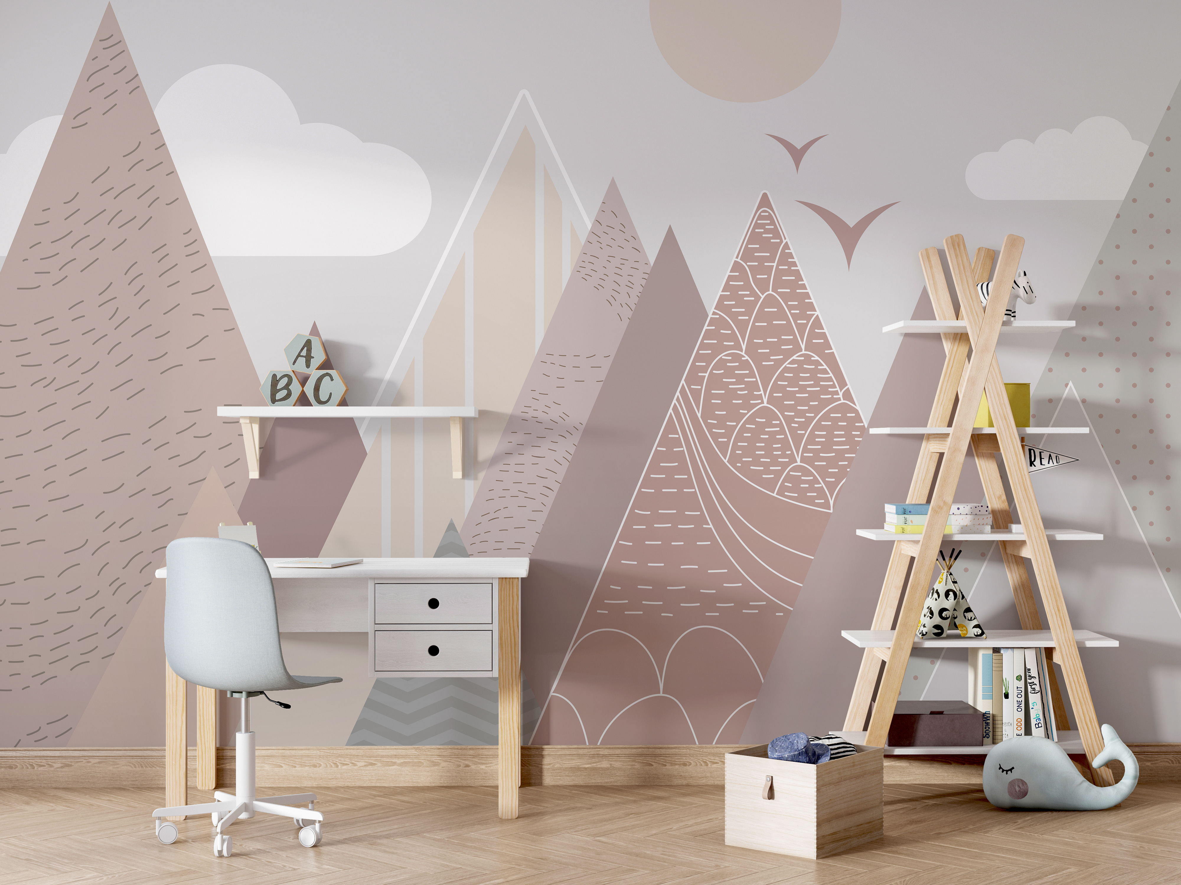 Stellen Sie sich vor, Sie betreten einen Raum und verspüren sofort ein Gefühl der Ruhe und Laune – wie in einem gemütlichen Tagtraum. Die Fototapete “Geometrische Berge mit fliegenden Vögeln” schafft genau das. Mit seinen verspielten, pastellfarbenen Bergen und freundlichen fliegenden Vögeln bringt es eine süße, heitere Stimmung in jedes Kinderzimmer. Es eignet sich hervorragend für Kinderzimmer und Kinderzimmer und versprüht ein bisschen Magie, ohne zu laut zu sein.