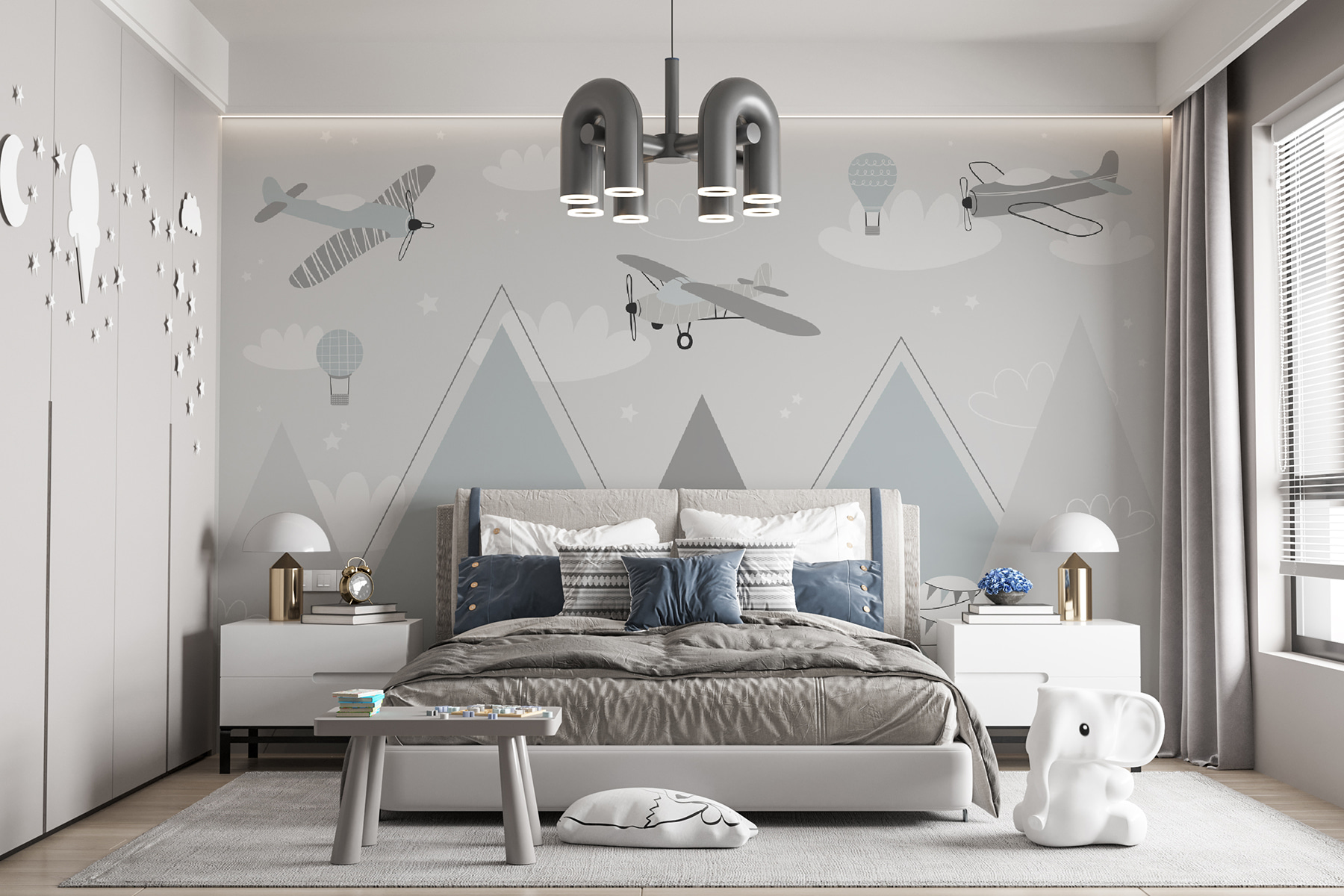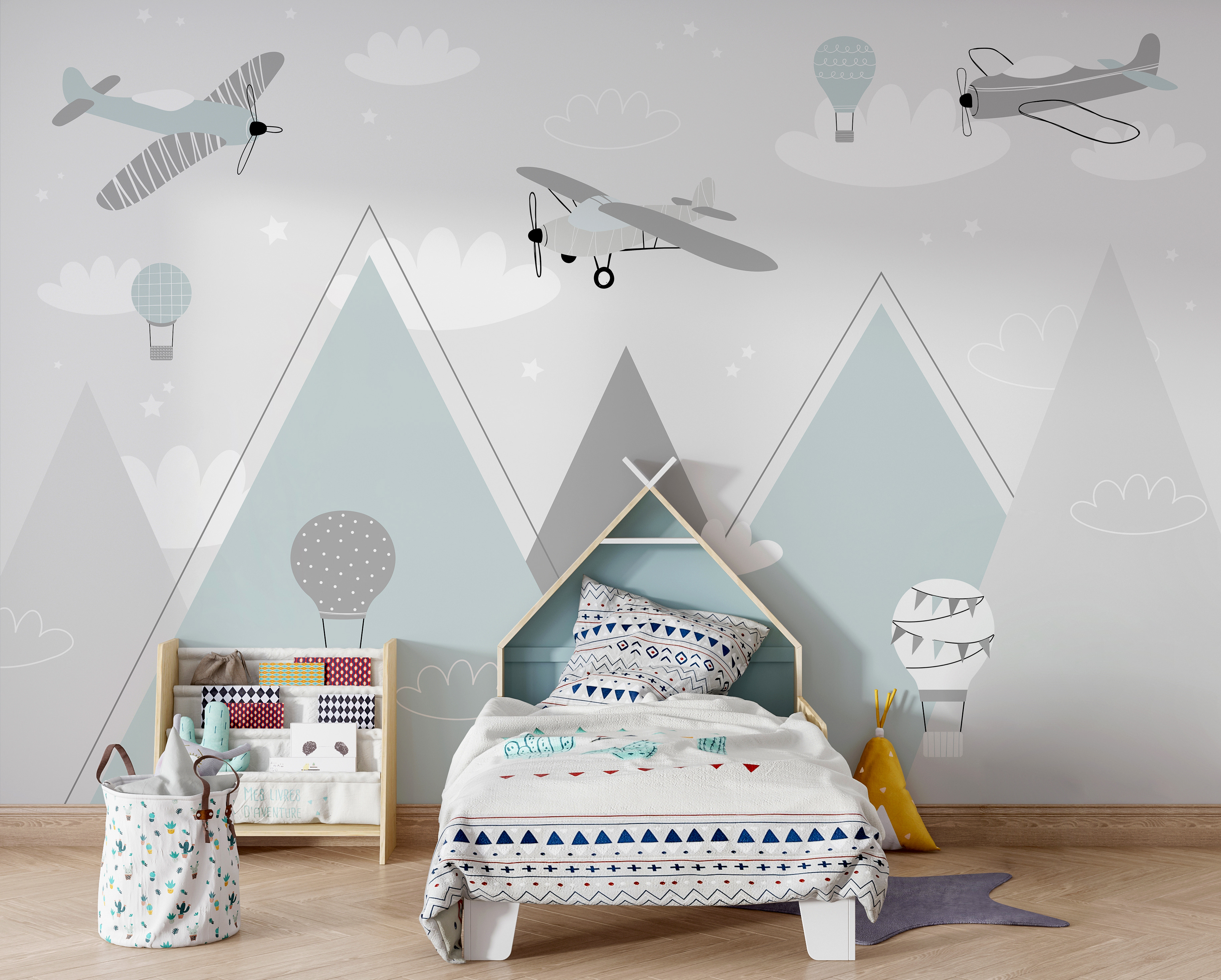 Stellen Sie sich vor, wie sich das Zimmer Ihres Kindes mit dieser bezaubernden Fototapete voller Vintage-Flugzeuge und skurriler Heißluftballons sofort verwandelt. Es ist, als würde man in ein verträumtes, pastellfarbenes Abenteuer eintauchen – ein Himmel voller sanfter Geschichten, die darauf warten, sich zu entfalten. Jedes Mal, wenn Ihr Kind einen Blick darauf wirft, könnte seine Fantasie abheben und hoch über den zauberhaften Bergen schweben. Perfekt für Söhne, Töchter, Kleinkinder oder alle, die ein bisschen skurrilen Spaß mögen. Und wer kann schon diesen bezaubernden Motiven widerstehen? Es ist nicht nur eine Dekoration – es ist eine Reise in ein Zimmer. Stellen Sie sich vor, wie Ihre Gute-Nacht-Geschichten inmitten dieser heiteren und verspielten Szene ihren Lauf nehmen. Gute Reise ins Traumland!