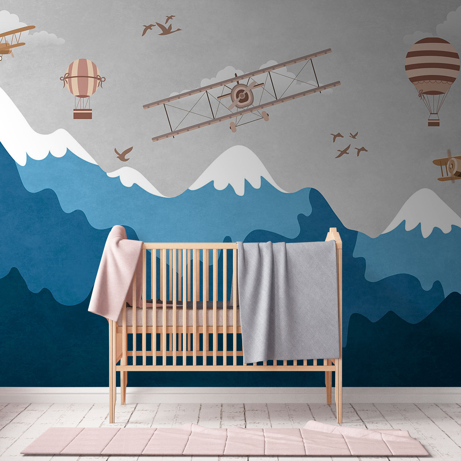 Stellen Sie sich vor, Sie betreten einen Raum und fühlen sich sofort beschwingt. Das ist genau das, was diese Fototapete “Cartoon of a Plane” bewirkt. Perfekt und verträumt für Kinderzimmer, verleiht es Ihren Wänden ein gemütliches, abenteuerliches Märchenbuchgefühl. Die bezaubernden Illustrationen von Flugzeugen, die über Hügel und Berge fliegen, sind eine fantastische Möglichkeit, die Fantasie Ihrer Kleinen anzuregen. Stellen Sie sich vor, wie sie so tun, als wären sie Piloten, die durch den Himmel fliegen – was für ein Spaß!