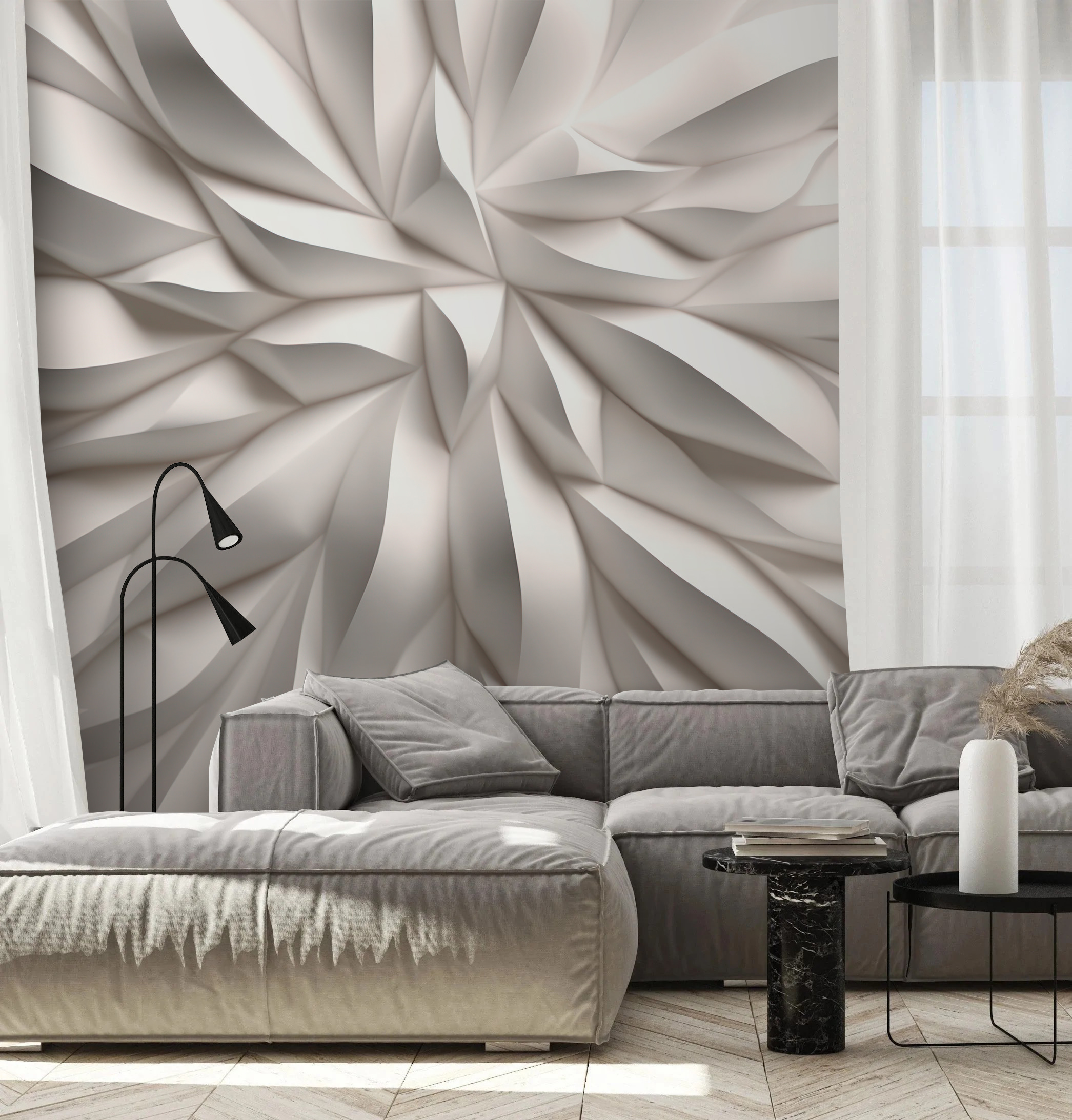 Die subtilen weißen Falten erzeugen einen dynamischen 3D-Effekt, der sowohl modern als auch beruhigend wirkt. Ehrlich gesagt, sieht es fast wie eine gigantische, verschlungene Blume aus. Perfekt für alle, die raffinierte Schlichtheit mit einem gewissen Pfiff lieben. Bringen Sie es in Ihr Wohnzimmer, Schlafzimmer oder sogar in Ihren Arbeitsbereich – ein sofortiges Upgrade! Außerdem ist es in der Kategorie Flower Fototapeten 3D zu finden, so dass Sie sicher sein können, dass es eine natürliche, organische Ausstrahlung hat. Tauchen Sie ein in ein Design-Abenteuer mit diesem einzigartigen Wandbild – wollen Sie es nicht einfach anfassen?