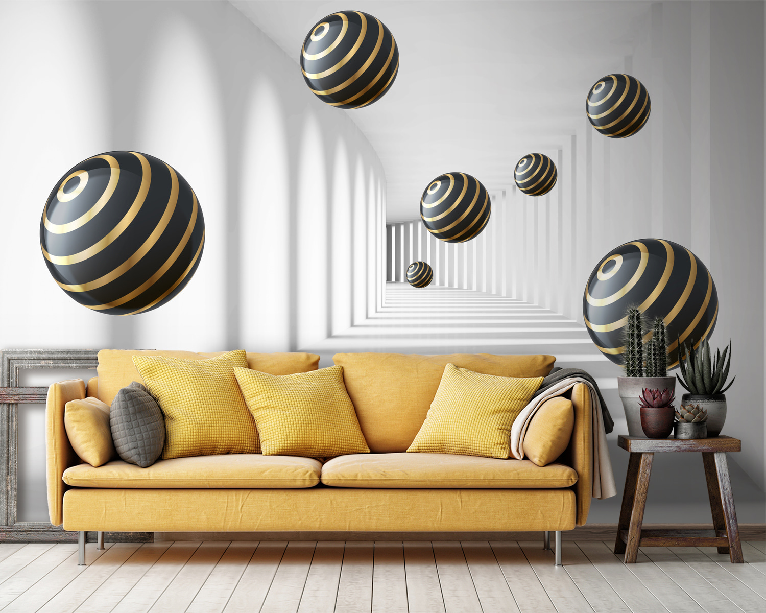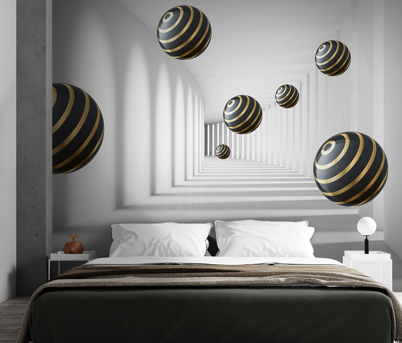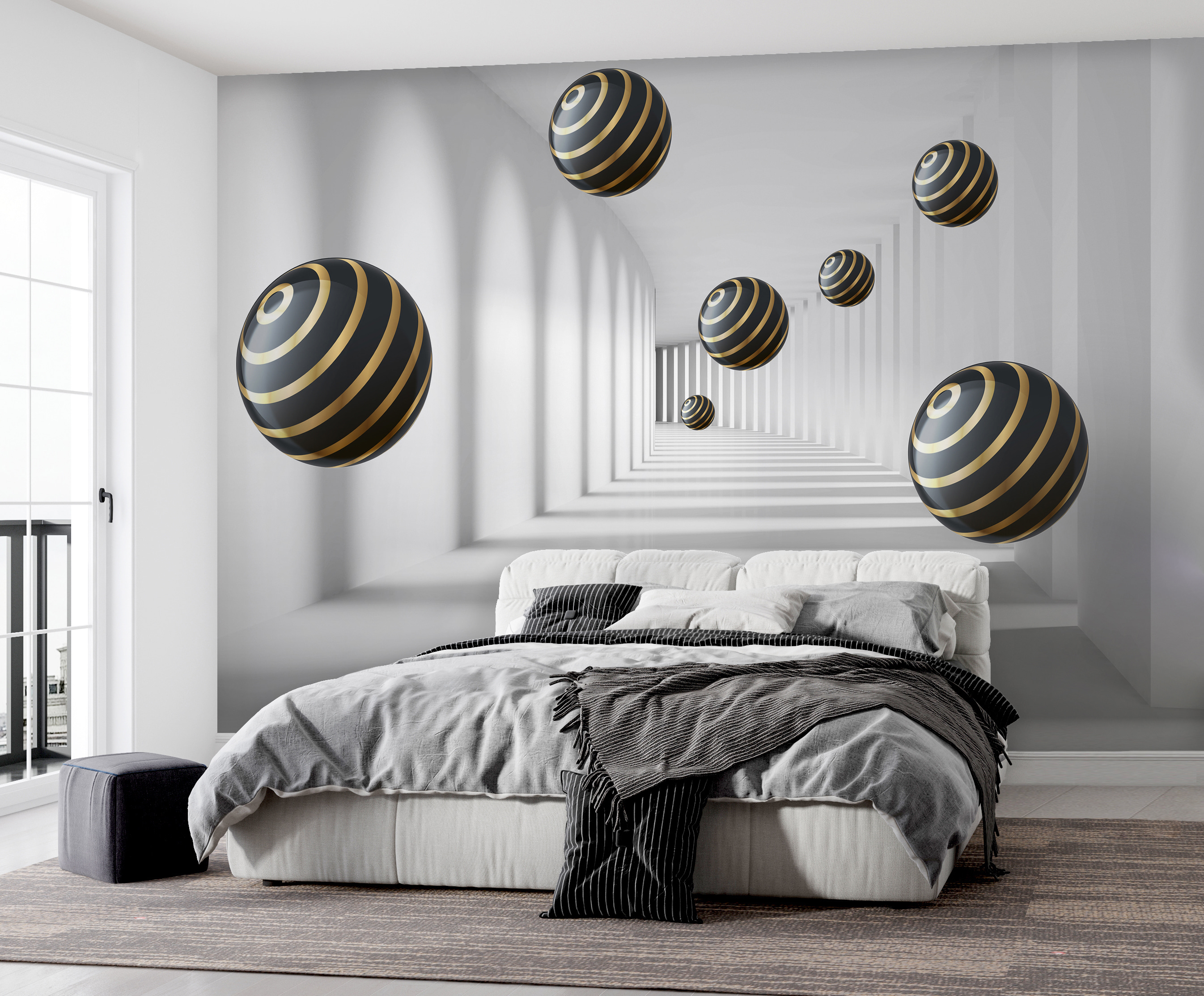 Stellen Sie sich vor, Sie betreten einen Raum und haben das Gefühl, direkt in eine andere Dimension einzutreten. Das ist genau das, was die “Fototapeten Striped Spheres Hover in White Corridor” bewirken. Dieses moderne, fast hypnotische Design gibt Ihnen das Gefühl, sich in einem futuristischen Tunnel zu befinden. Die Kugeln mit ihren glatten Streifen scheinen mühelos zu schweben und schaffen ein Gefühl von Tiefe, das den Raum tatsächlich größer erscheinen lässt. Es ist, als hätte man sein eigenes kleines Sci-Fi-Filmset direkt an der Wand!