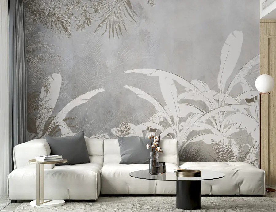 Transform any room into a serene oasis with this stunning white and grey wallpaper mural featuring delicate plants. Imagine waking up to this calming nature scene, a gentle reminder of the great outdoors, minus the bugs. It’s like having a permanent spring day inside your home! Perfect for a child’s room or a cozy nook, this mural invites creativity and exploration. And hey, it could even inspire little ones to become future botanists—who knows? With its soft tones and intricate details, it adds just the right touch of elegance and whimsy. Such a fun way to elevate your space!