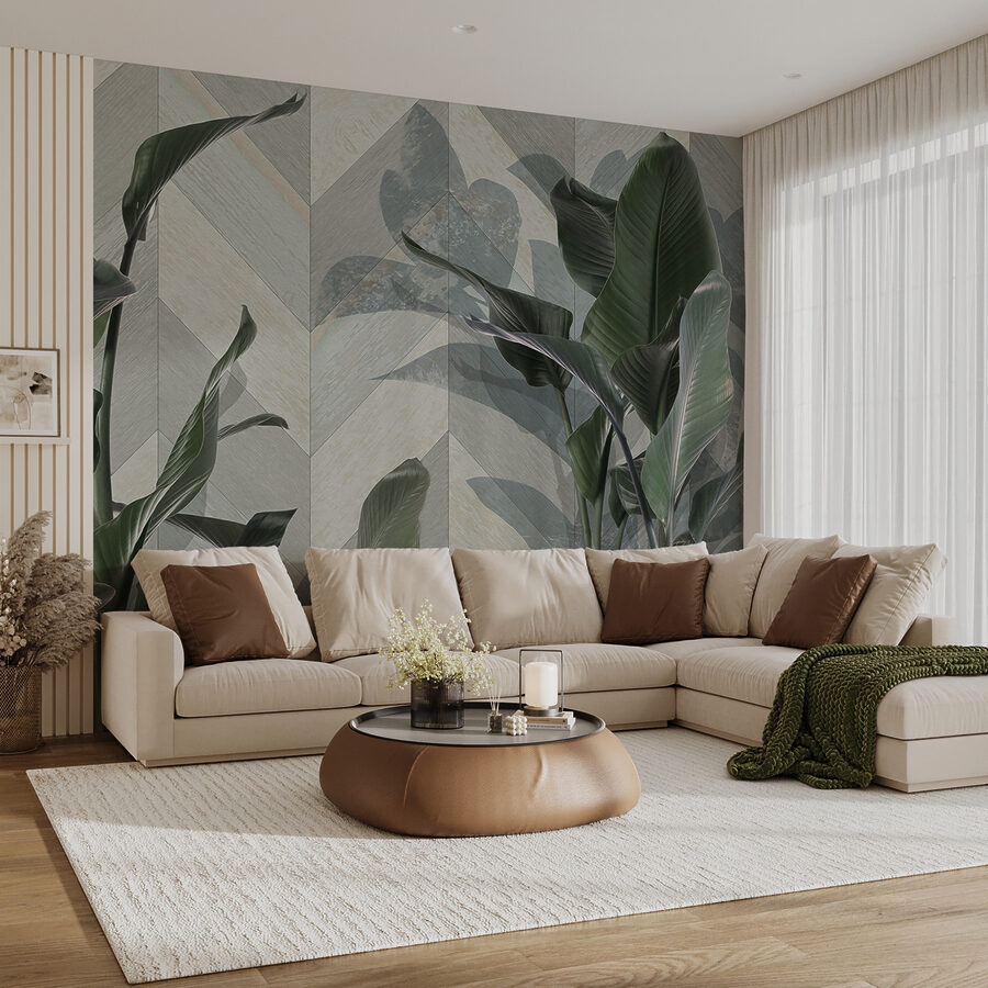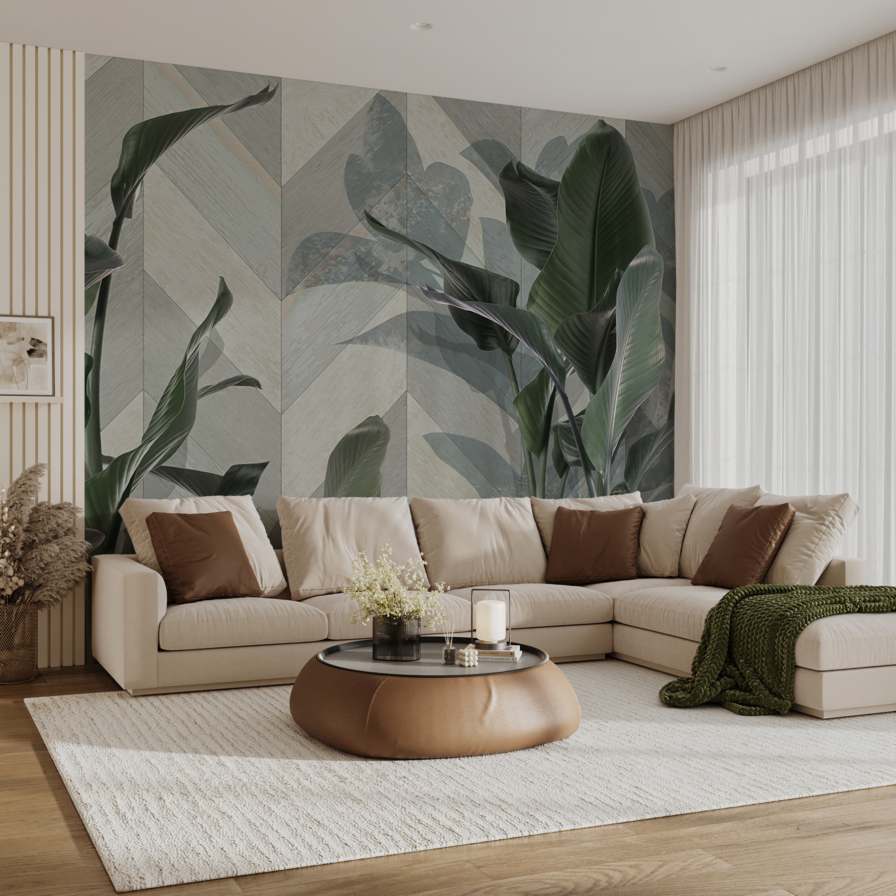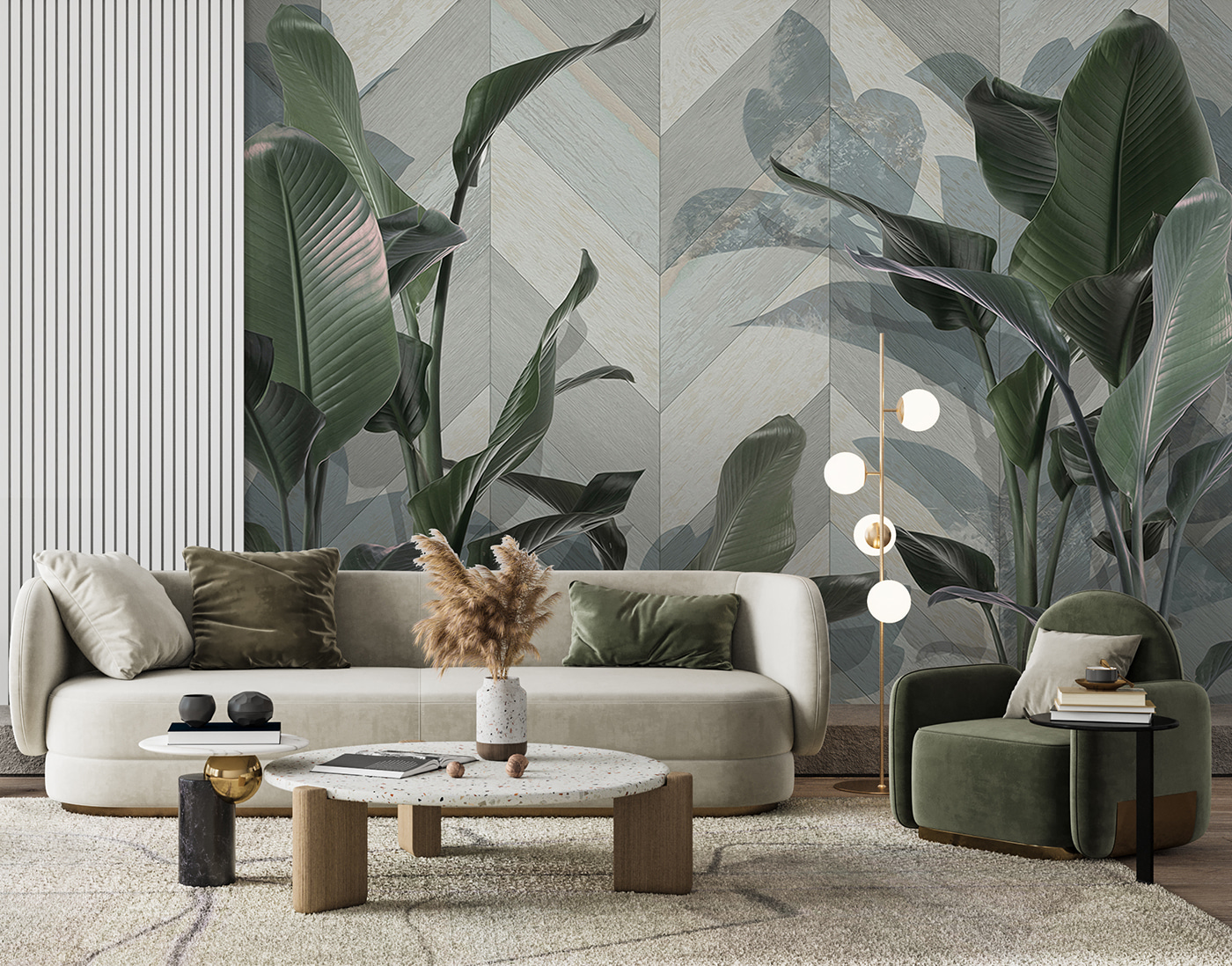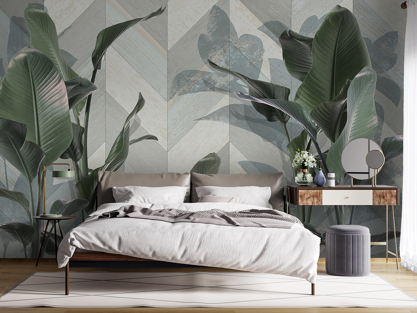 Verwandeln Sie jeden Raum mit dieser atemberaubenden Fototapete mit üppigen grünen Blättern vor einem schicken gemusterten Hintergrund. Es ist, als ob Sie die Ruhe des Waldes direkt in Ihren Wohnbereich bringen würden! Stellen Sie sich vor, Sie wachen jeden Morgen auf und haben das Gefühl, in einer gemütlichen Hütte inmitten der Natur zu sein. Das Laub sorgt für eine erfrischende Atmosphäre – perfekt für die Tage, an denen Sie sich nach einem Stückchen Natur sehnen, ohne sich um Ungeziefer oder das Wetter sorgen zu müssen. Außerdem sorgen die dezenten Muster für Abwechslung – niemand wird merken, ob Sie nur von einem tropischen Urlaub träumen oder ihn tatsächlich erleben! Diese Fototapete ist nicht nur Dekoration, sie ist ein Erlebnis, das auf Sie wartet.