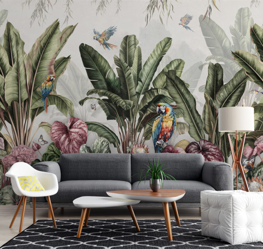 Stellen Sie sich vor, Sie betreten einen Raum und fühlen sich sofort in ein üppiges Paradies versetzt. Genau das passiert mit dem Wandbild “Tropisches Paradies mit bunten Papageien”. Lebendige Papageien, exotische Pflanzen und Schmetterlinge, die fast von der Wand flattern – es ist wie ein Mini-Urlaub, ohne eine Tasche zu packen! Ganz gleich, ob Sie einen müden Raum aufhellen oder ein wenig Laune in Ihren Alltag bringen möchten, dieses Wandbild ist genau das Richtige für Sie. Perfekt für verregnete Tage, an denen ein Hauch von Farbe und Natur genau das Richtige für Sie ist. Betrachten Sie es als Ihr eigenes Stück vom Paradies zu Hause.