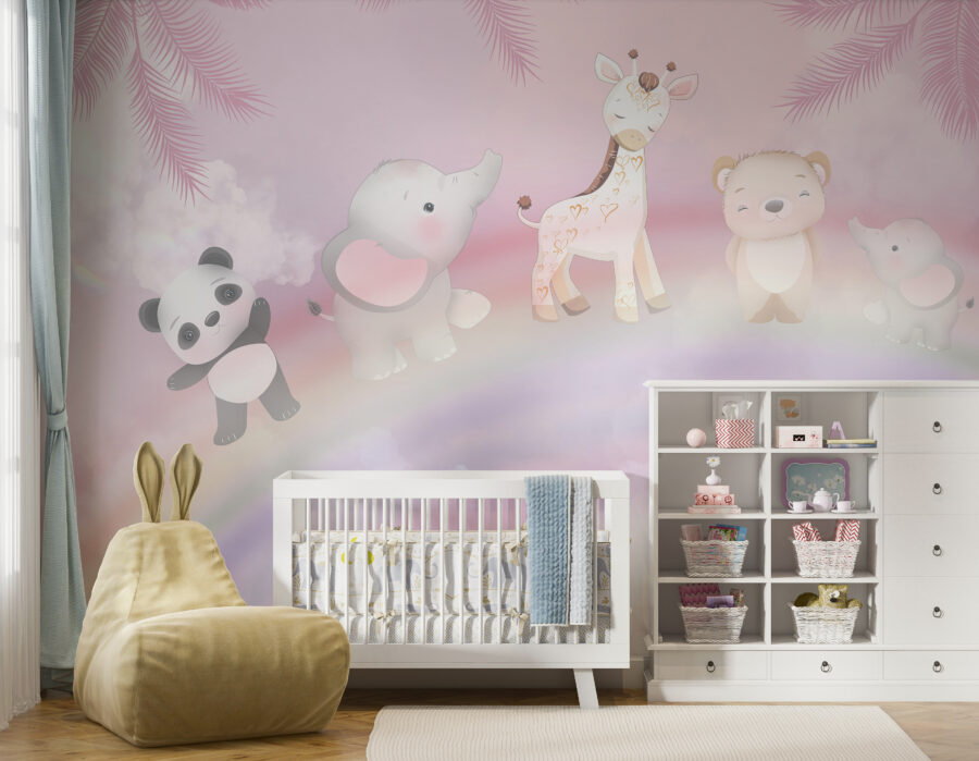 Stellen Sie sich vor, Sie betreten das Zimmer Ihres Kindes und werden von dieser bezaubernden Truppe begrüßt – einem liebenswerten Panda, einer sanften Giraffe, einem gemütlichen Bären und ihren verspielten Freunden. Dieses Wandbild Cartoon of a Panda” ist mehr als nur Dekoration; es ist wie ein wunderlicher Tagtraum. Zartrosa Himmel und flauschige Wolken bilden einen beruhigenden Hintergrund, während ein pastellfarbener Regenbogen alles miteinander verbindet – wie eine Umarmung, nicht wahr? Das Wandbild ist ideal für Kinderzimmer und versprüht ein bisschen Freude und Staunen und regt jeden Tag zu fantasievollen Abenteuern an. Perfekt, um die Kreativität Ihres Kindes zu fördern und seinen Raum in einen magischen Rückzugsort zu verwandeln. Ziemlich entzückend, oder?