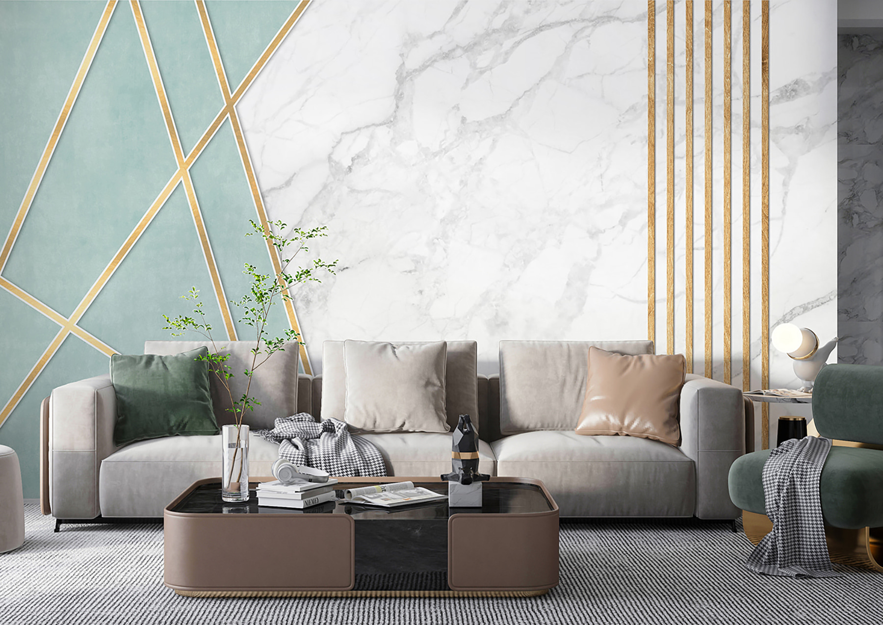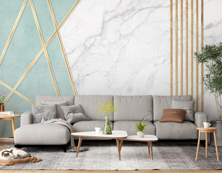 Verwandeln Sie Ihren Raum mit diesen Wandbildern, die elegante Linien vor einem marmorierten Hintergrund zeigen. Stellen Sie sich vor, Sie betreten einen Raum, in dem Geometrie auf Kunst trifft; es ist, als hätten Sie ein modernes Kunstwerk, das Raffinesse ausstrahlt, ohne nach Aufmerksamkeit zu schreien. Die kühlen Töne und sanften Muster können eine beruhigende Atmosphäre schaffen – perfekt, um zu träumen oder sich nach einer langen Woche zu entspannen. Stellen Sie sich eine gemütliche Ecke mit einem bequemen Sessel, einem warmen Getränk in der Hand und dieser Wandmalerei vor, die für die richtige Stimmung sorgt. Es ist die Art von Dekoration, die ein Statement setzt, aber dennoch zugänglich ist, wie ein freundliches Gespräch bei einem Kaffee. Perfekt für Minimalisten und Designliebhaber gleichermaßen. Warum lassen Sie nicht Ihre Wände für sich sprechen?