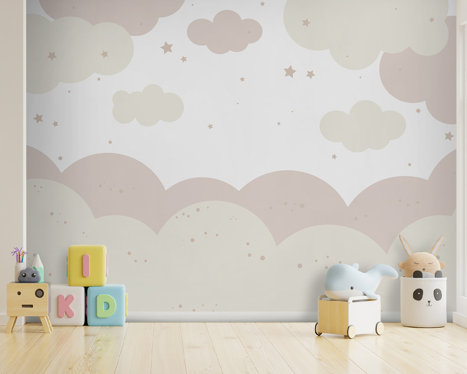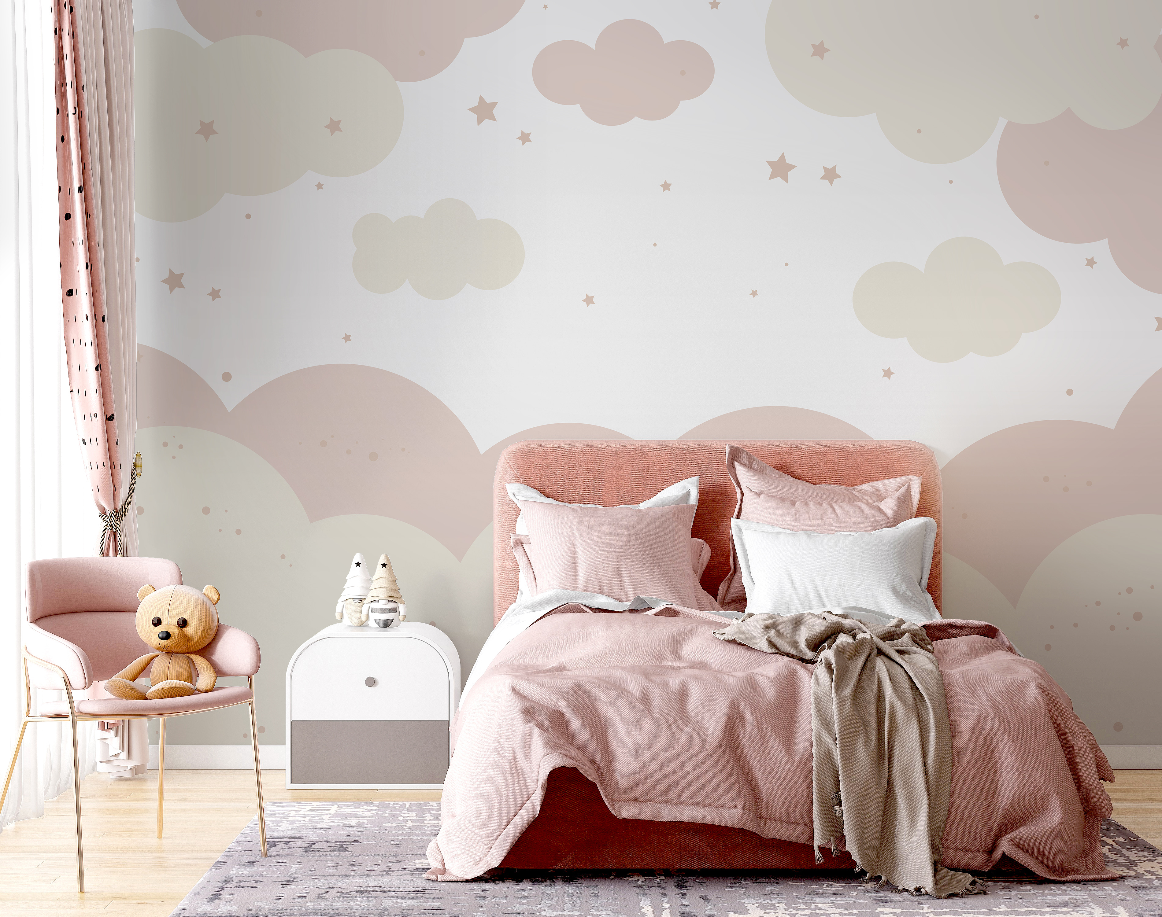 Stellen Sie sich das vor: ein kleiner Junge, der auf seinem Bettchen liegt und zu den flauschigen Wolken hinaufschaut, als wäre er in einem wunderlichen Himmel verloren. Oder eine gemütliche Leseecke, in der diese sanften Farben einen einfach in Ruhe einhüllen. Nicht nur für die Kleinen – jeder kann ein bisschen von dieser verträumten Wolkenstimmung gebrauchen, oder?