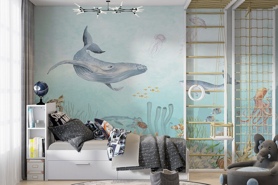 Tauchen Sie ein in ein Meer voller Wunder mit dieser fesselnden Fototapete “Underwater Life”! Stellen Sie sich vor, Sie verwandeln ein schlichtes Zimmer in einen Ozean voller verspielter Meeresbewohner und lebendiger Korallenriffe. Dieses Wandbild ist perfekt geeignet, um die Fantasie von Kindern und Kleinkindern anzuregen und bringt die Magie des tiefen Blaus direkt in Ihr Zuhause. Hier gibt es einen riesigen Wal – und siehe da! Eine kleine Gruppe von Clownfischen, die in den Anemonen Verstecken spielen. Egal, ob im Kinderzimmer oder im Badezimmer, es bringt sofort einen Hauch von Abenteuer und Ruhe. Hören Sie nicht auch das leise Rauschen des Wassers und das sanfte Zischen der Tentakel des Oktopus? Bringen Sie ihn in Ihrem Raum an und beobachten Sie, wie sich die Augen vor Freude weiten (und vielleicht auch das eine oder andere Kichern). Es ist mehr als nur eine Fototapete, es ist eine Unterwasser-Eskapade, ohne nass zu werden – also los, mach einen Spritzer!