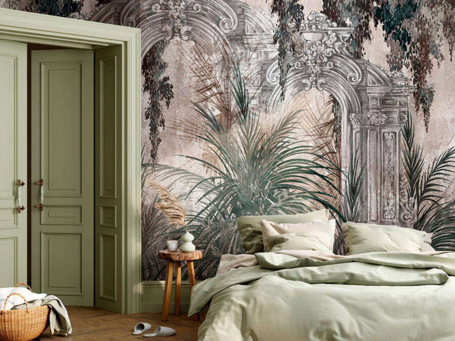 Mit diesem atemberaubenden Wandbild ist es ganz einfach, einen Raum in eine tropische Oase zu verwandeln. Stellen Sie sich vor, dass Sie direkt von Ihrem Wohnzimmer aus in einen üppigen Dschungel eintreten – dieses Kunstwerk lädt Sie ein, der Realität zu entfliehen, wenn auch nur für einen Moment. Der detaillierte Bogen umrahmt eine wunderschöne Pflanzenszene, die Eleganz und Natur mühelos miteinander verbindet. Es ist, als hätten Sie ein persönliches Stück Paradies an Ihrer Wand! Stellen Sie sich vor, wie Ihre Freunde es bewundern und kommentieren, wie es sofort die Stimmung aufhellt. Perfekt für alle, die einen Hauch von Wildnis lieben, ohne sich um die Pflege echter Pflanzen kümmern zu müssen. Wer hätte gedacht, dass Wandkunst so viel Freude bereiten kann?