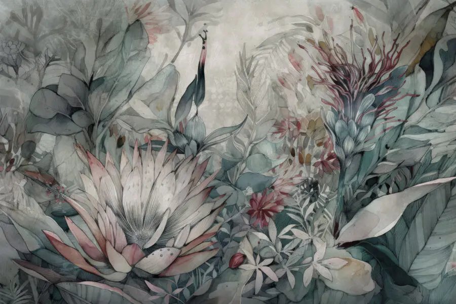 Treten Sie mit der Fototapete “Delicate Floral Illustration” in einen zauberhaften Traum ein. Dieses Wandbild ist perfekt für alle, die einen Hauch von Skurrilität in ihrer Einrichtung lieben, denn es entführt Sie direkt in einen beruhigenden Dschungelgarten. Stellen Sie sich exotische Vögel und üppige Blüten vor – alles in sanften, beruhigenden Farben. Es ist, als hätte man ein geheimes tropisches Plätzchen, wo alles sanft und friedlich ist.