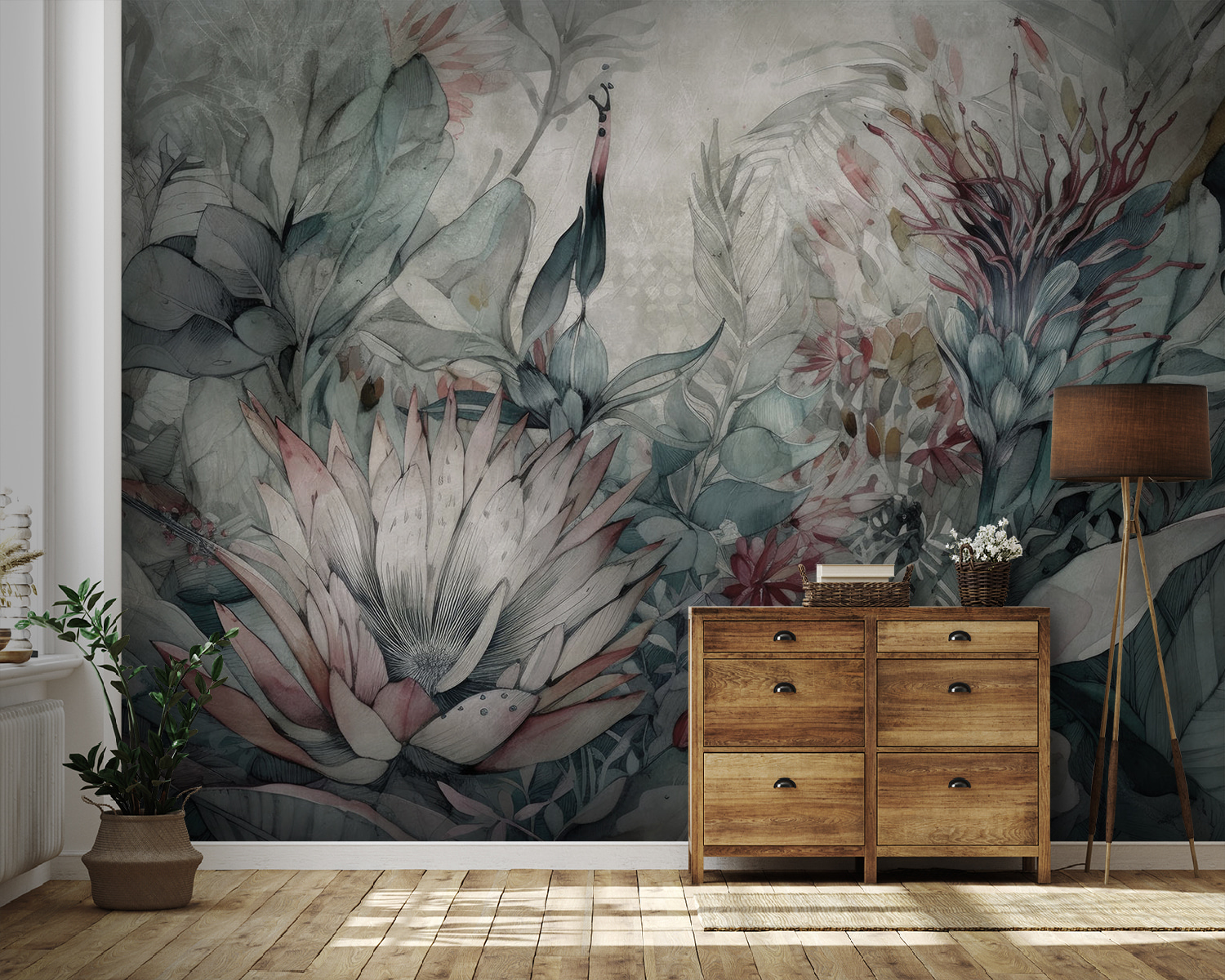 Diese Fototapete passt sowohl zum Boho-Chic als auch zu einem modernen, minimalistischen Stil und bringt genau den richtigen Hauch von Kunst aus der Natur mit sich. Denken Sie an Ihren Morgenkaffee – und stellen Sie sich vor, Sie trinken ihn inmitten dieser ruhigen, wunderschönen botanischen Wonne. Ihr Zimmer wird sich wie ein beruhigendes Refugium anfühlen, ein Ort, an dem Sie sich entspannen und Ihre Gedanken schweifen lassen können. Außerdem werden Ihre Freunde bestimmt ein bisschen neidisch sein.