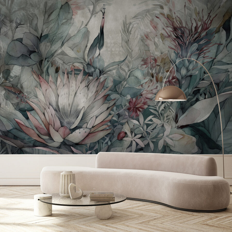 Treten Sie mit der Fototapete “Delicate Floral Illustration” in einen zauberhaften Traum ein. Dieses Wandbild ist perfekt für alle, die einen Hauch von Skurrilität in ihrer Einrichtung lieben, denn es entführt Sie direkt in einen beruhigenden Dschungelgarten. Stellen Sie sich exotische Vögel und üppige Blüten vor – alles in sanften, beruhigenden Farben. Es ist, als hätte man ein geheimes tropisches Plätzchen, wo alles sanft und friedlich ist.