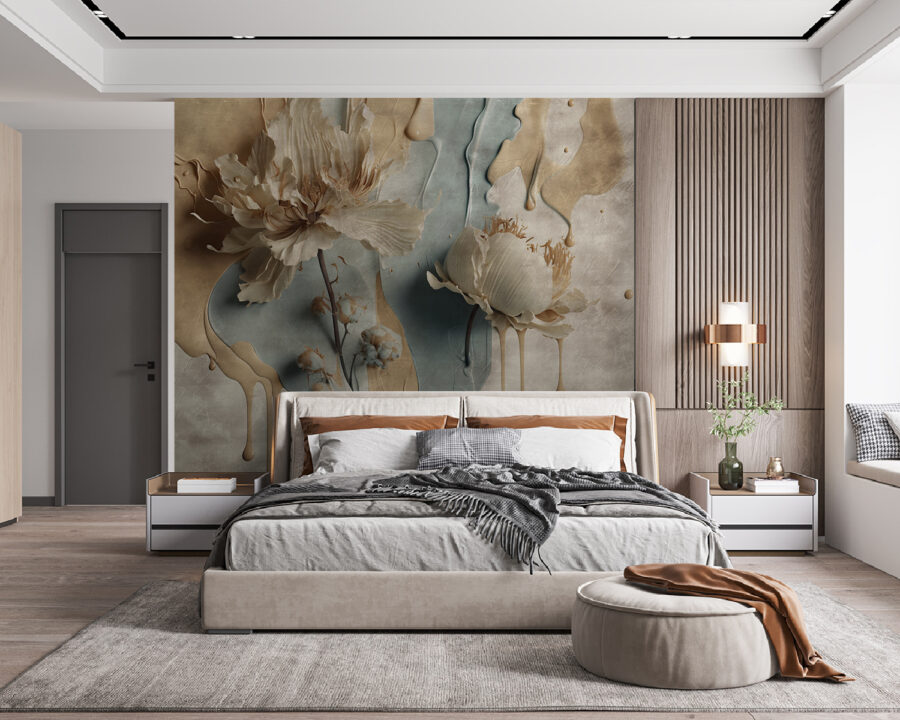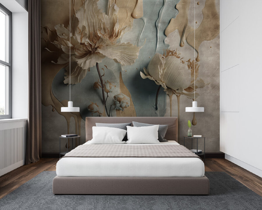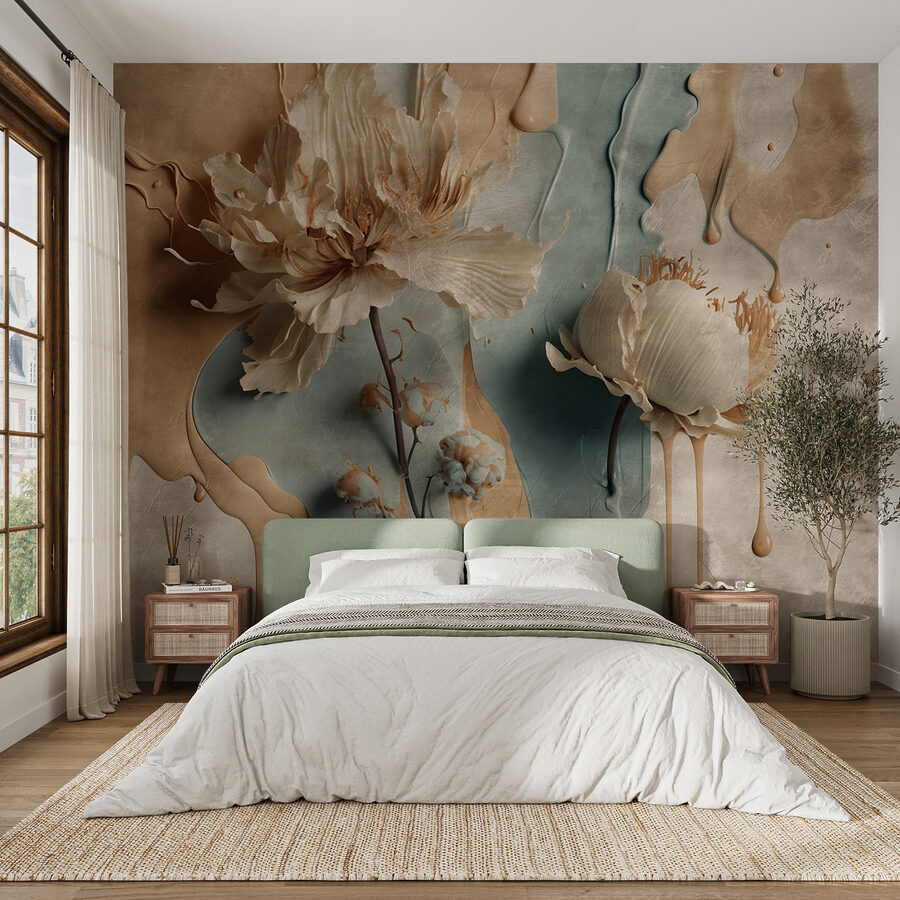 Fototapeten Fototapeten Blumen mit kunstvollen Farbtropfen (Artikelnummer: u95662)