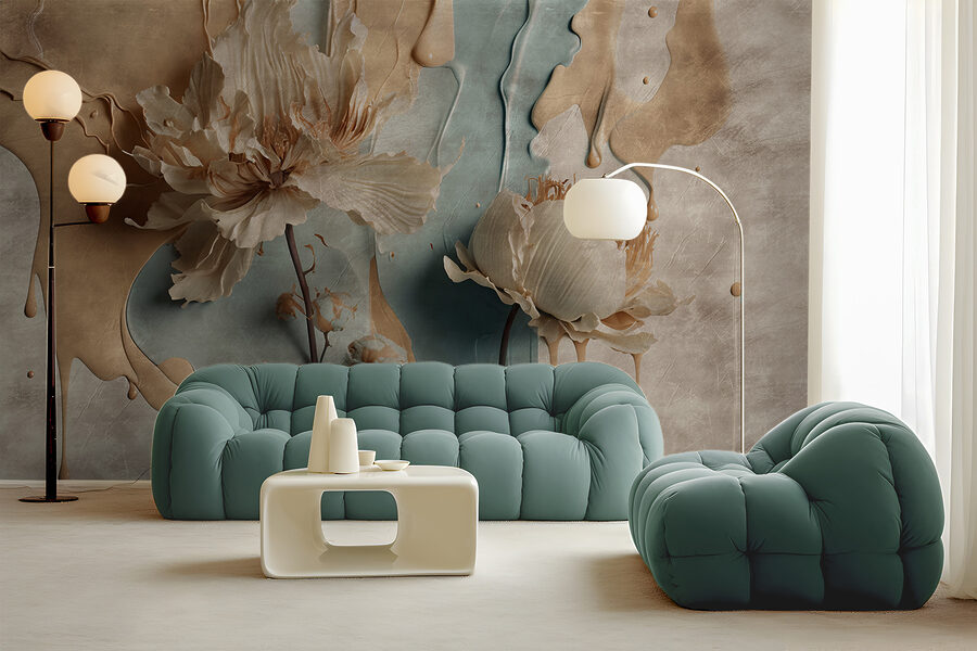 Fototapeten Blumen mit kunstvollen Farbtropfen Fototapeten Blumen mit kunstvollen Farbtropfen
