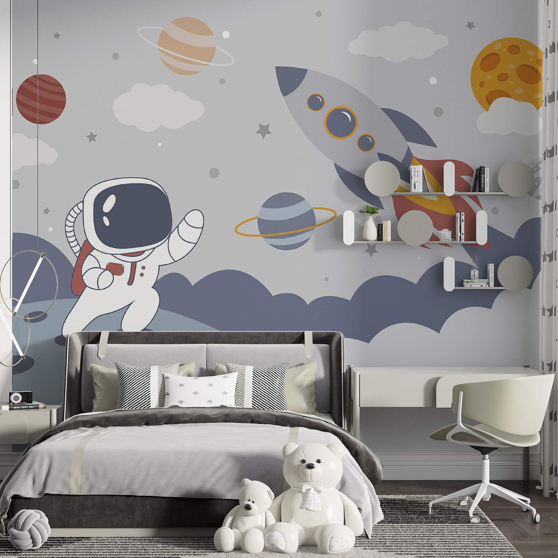 Es ist ganz einfach, den Raum eines Kindes in ein kosmisches Abenteuer zu verwandeln, wie dieses Wandbild mit einem charmanten Astronauten und lebendigen Planeten zeigt. Stellen Sie sich vor, wie Ihr Kind auf diese außerirdische Szene starrt und von Weltraumreisen und intergalaktischen Eskapaden träumt. Das verspielte Design regt die Fantasie an und weckt die Neugierde auf das Universum. Die farbenfrohen Ringe und skurrilen Wolken laden zu Tagträumen und Geschichten ein und machen die Schlafenszeit ein wenig weniger gewöhnlich. Es ist nicht nur eine Dekoration; es ist ein Tor zu einer Galaxie voller Wunder und Freude!
