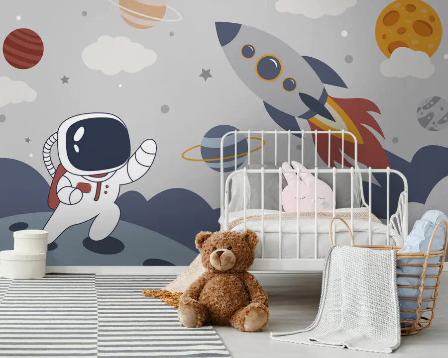 Es ist ganz einfach, den Raum eines Kindes in ein kosmisches Abenteuer zu verwandeln, wie dieses Wandbild mit einem charmanten Astronauten und lebendigen Planeten zeigt. Stellen Sie sich vor, wie Ihr Kind auf diese außerirdische Szene starrt und von Weltraumreisen und intergalaktischen Eskapaden träumt. Das verspielte Design regt die Fantasie an und weckt die Neugierde auf das Universum. Die farbenfrohen Ringe und skurrilen Wolken laden zu Tagträumen und Geschichten ein und machen die Schlafenszeit ein wenig weniger gewöhnlich. Es ist nicht nur eine Dekoration; es ist ein Tor zu einer Galaxie voller Wunder und Freude!