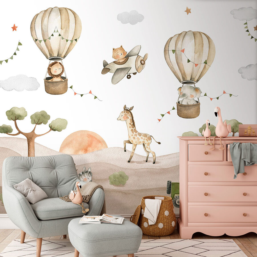 Sieh dir das an – ein Wandbild mit dem Titel “Affe reitet auf einem Zebra”! Perfekt für das Zimmer Ihres kleinen Entdeckers, egal ob er Tiere liebt oder einfach nur eine wilde Fantasie hat. Stellen Sie sich das vor: Ein Affe reitet fröhlich auf einem Zebra durch eine skurrile Landschaft, die wie eine Gutenachtgeschichte aussieht. Heißluftballons, eine verspielte Giraffe und ein freundlicher Jeep vervollständigen diese bezaubernde Szene. Stellen Sie sich vor, Ihr Kind wacht jeden Morgen mit diesem Bild auf und hat das Gefühl, sich in einem endlosen Abenteuer zu befinden. Es ist nicht nur eine Wanddekoration, sondern auch eine Anregung zum Geschichtenerzählen und Träumen. Wie cool ist das denn? Dieses Wandbild ist ein Hit für jedes Kinderzimmer, denn es macht den Raum lustig und einzigartig. Wer hätte gedacht, dass Dekorieren so schön sein kann?