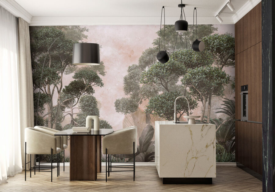 Verwandeln Sie Ihren Raum in eine heitere Oase mit dieser atemberaubenden Fototapete mit üppigen Bäumen und einer ruhigen Landschaft. Stellen Sie sich vor, wie Sie Ihren Morgenkaffee schlürfen, während Sie auf diese friedliche Kulisse blicken – es ist, als ob Sie ein Stück Natur ins Haus holen, ohne sich die Schuhe schmutzig zu machen. Die leuchtenden Grüntöne bringen Leben in jeden Raum und lassen ihn frisch und einladend wirken. Diese Fototapete eignet sich perfekt für eine gemütliche Leseecke oder einen ruhigen Arbeitsbereich. Außerdem ist es ein toller Gesprächsanlass. Ihre Freunde werden Sie fragen, wo sie so etwas bekommen können, und Sie werden lächeln, weil Sie wissen, dass es Ihr kleines Geheimnis der Gelassenheit ist!