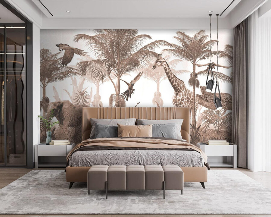 Verwandeln Sie jeden Raum in einen wilden Rückzugsort mit dieser bezaubernden Fototapete, die eine Giraffe und einen Vogel zeigt, die inmitten eines üppigen Waldes herumtollen. Es ist wie eine Mini-Safari direkt in Ihrem Zuhause, bei der jeder Blick ein bisschen Freude auslöst. Stellen Sie sich vor, wie Ihre Kinder kichern, wenn sie die einzelnen Tiere entdecken, die sich im Laub verstecken, oder wie Sie gemütliche Abende damit verbringen, sich Geschichten von Dschungelabenteuern zu erzählen. Die erdigen Farbtöne schaffen eine beruhigende Atmosphäre, die sich perfekt für ein Kinderzimmer oder ein Spielzimmer eignet. Dieses Wandbild ist nicht nur Dekoration – es ist ein Tor zur Fantasie und bringt die Wunder der Natur ins Haus. Wer möchte nicht jeden Tag das Gefühl haben, ein Dschungelabenteuer zu erleben?