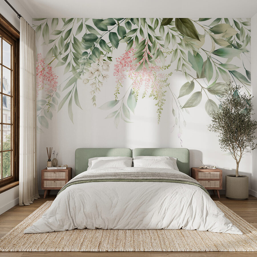 Stellen Sie sich vor, Sie betreten einen Raum und fühlen sich sofort von diesem eleganten, floralen Wandbild beruhigt. Sanfte Rosa- und Grüntöne fließen wie eine sanfte Gartenbrise an der Wand entlang. Es ist die perfekte Mischung aus modern und zeitlos. Hervorragend geeignet für ein Wohnzimmer, ein Schlafzimmer oder sogar ein stilvolles Heimbüro. Die zarten Blätter und Blüten geben Ihnen das Gefühl, in einem sonnigen botanischen Garten zu verweilen, selbst an den regnerischsten Tagen. Wenn Sie also Ihrem Raum einen Hauch von Naturzauber verleihen möchten, ist dieses Wandbild vielleicht genau das Richtige für Sie.