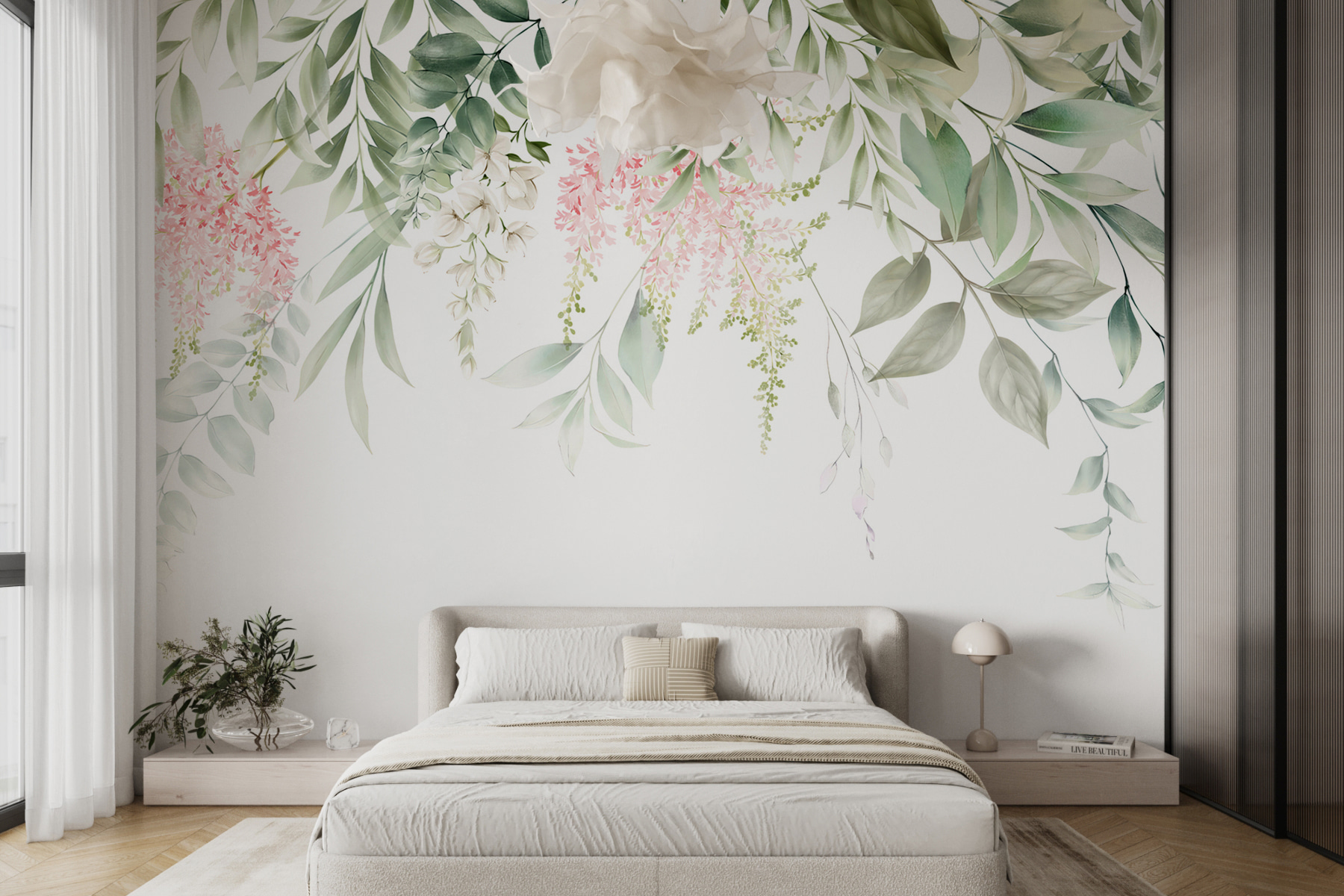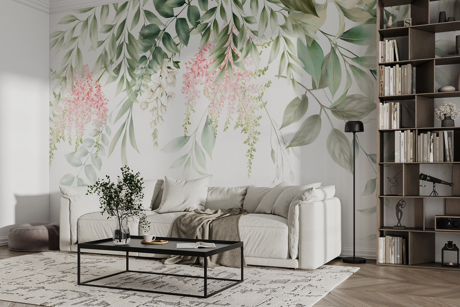 Stellen Sie sich vor, Sie betreten einen Raum und fühlen sich sofort von diesem eleganten, floralen Wandbild beruhigt. Sanfte Rosa- und Grüntöne fließen wie eine sanfte Gartenbrise an der Wand entlang. Es ist die perfekte Mischung aus modern und zeitlos. Hervorragend geeignet für ein Wohnzimmer, ein Schlafzimmer oder sogar ein stilvolles Heimbüro. Die zarten Blätter und Blüten geben Ihnen das Gefühl, in einem sonnigen botanischen Garten zu verweilen, selbst an den regnerischsten Tagen. Wenn Sie also Ihrem Raum einen Hauch von Naturzauber verleihen möchten, ist dieses Wandbild vielleicht genau das Richtige für Sie.
