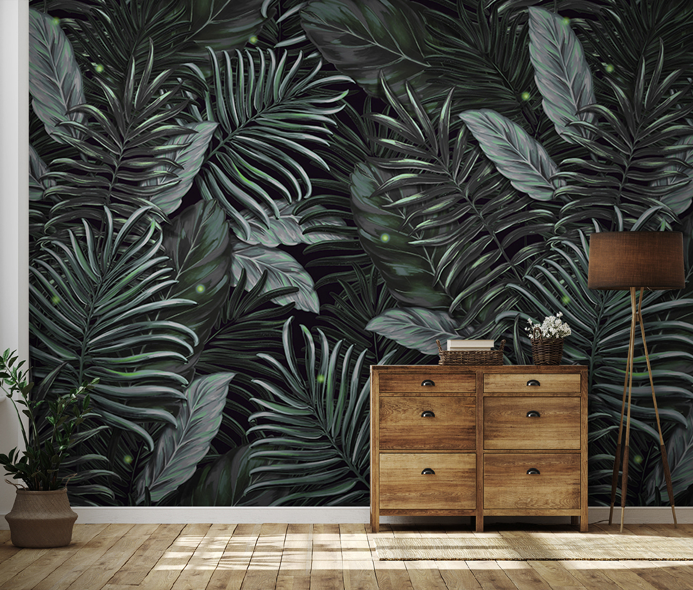 Haben Sie sich jemals gewünscht, Sie könnten in einen üppigen, tropischen Dschungel eintauchen, ohne Ihr Haus zu verlassen? “Fototapeten Lush Tropical Leaves and Fireflies” könnte genau das sein, was Sie brauchen. Dieser Druck hüllt Ihr Zimmer in das leuchtende Grün dichter Blätter, wie eine kleine Zuflucht im Regenwald. Und diese winzigen Glühwürmchen? Eine skurrile Note, bei der man sie fast schon leise summen hört.