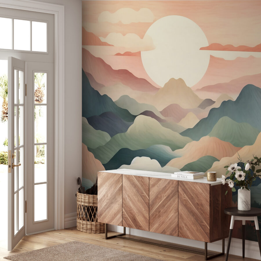 Stellen Sie sich vor, Sie wachen jeden Tag in einer traumhaften Landschaft auf, in der Berge auf einen ruhigen Himmel treffen – direkt in Ihrem Wohnzimmer! Die Fototapete “White Circle in the Sky” hüllt Ihren Raum in sanfte Farbtöne und eine beruhigende Landschaft. Es ist, als hätten Sie einen persönlichen Rückzugsort an Ihrer Wand. Perfekt für Naturliebhaber oder alle, die sich einfach nur ein bisschen mehr Ruhe wünschen. Die sanften Pastellfarben laden zum Entspannen ein und sind die perfekte Kulisse für einen gemütlichen Sonntagmorgen oder einen Abend mit einem Buch. Außerdem ist es nicht nur ein Wandbild, sondern ein Gefühl – eine friedliche Flucht aus dem Alltagsstress.