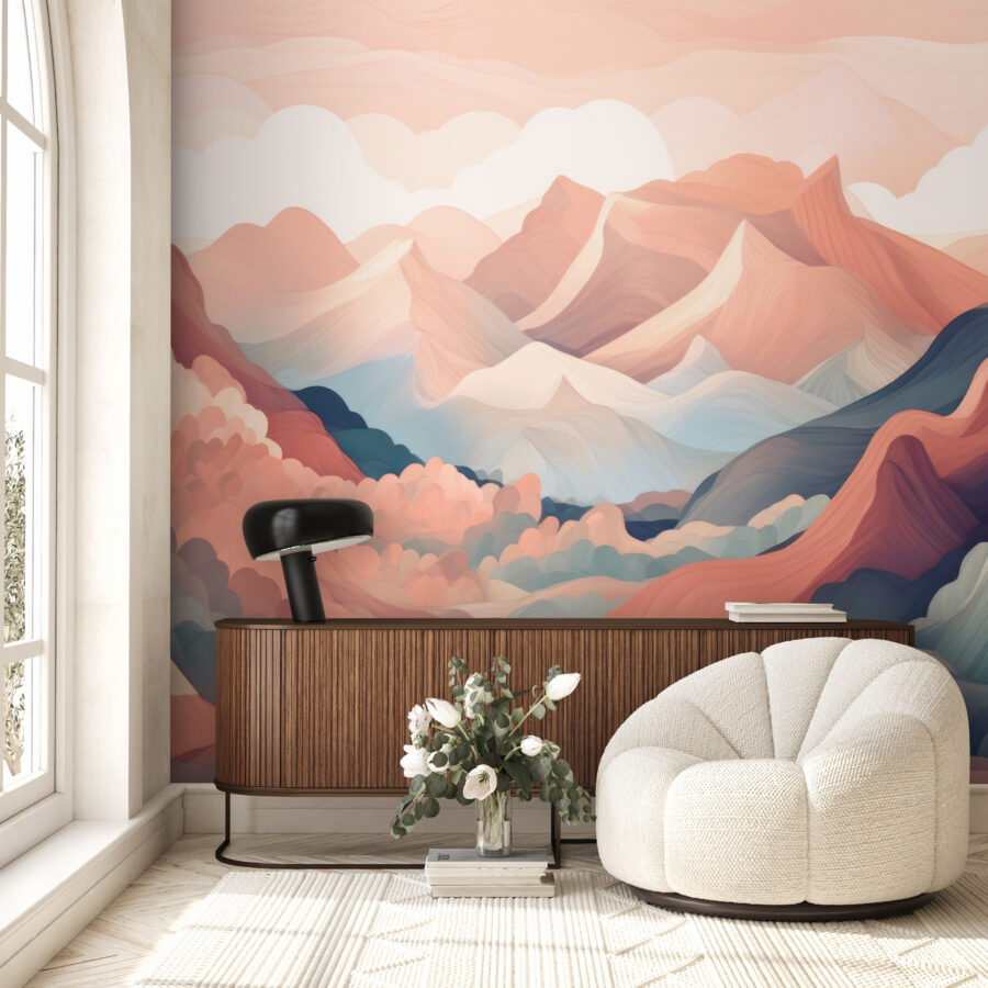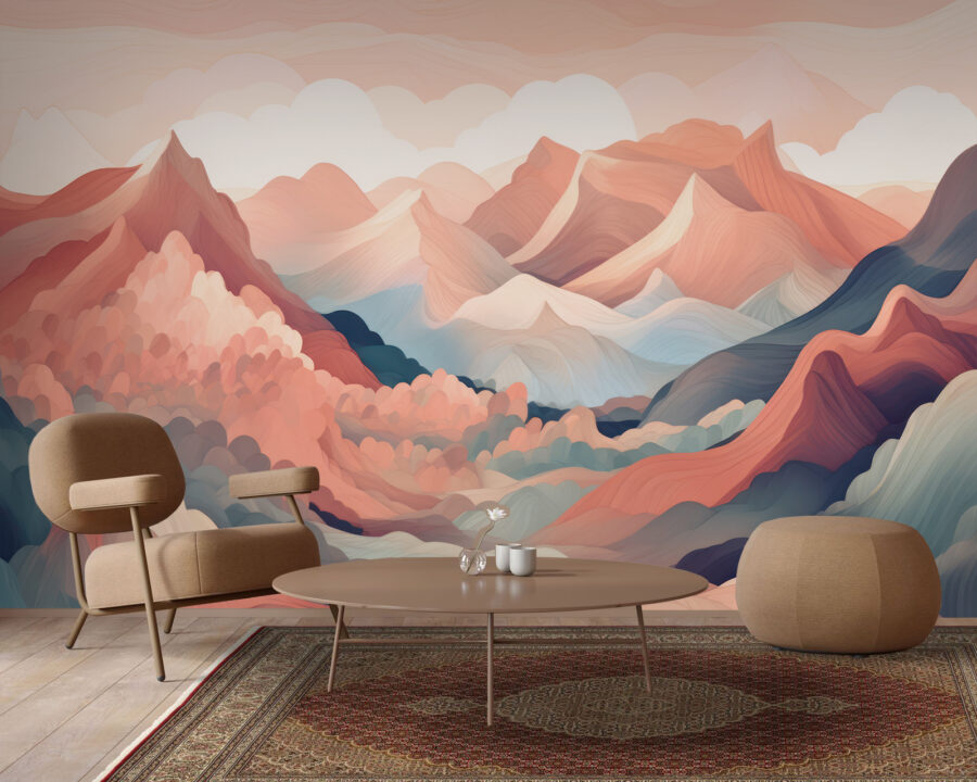 Fühlen Sie sich, als bräuchten Ihre Wände einen Hauch von Leben? Dann sehen Sie sich diese Fototapete “Colorful Mountain Landscape Painting” an! Es handelt sich nicht um eine typische Dekoration, sondern um ein Abenteuer für die Sinne direkt in Ihrem Wohnzimmer. Stellen Sie sich vor, Sie machen es sich auf Ihrer Couch bequem und blicken auf pastellfarbene Gipfel und wirbelnde Muster, die Sie praktisch zum Träumen einladen. Es ist wie eine Mini-Reise in ein fernes Land, ohne das Haus zu verlassen.
