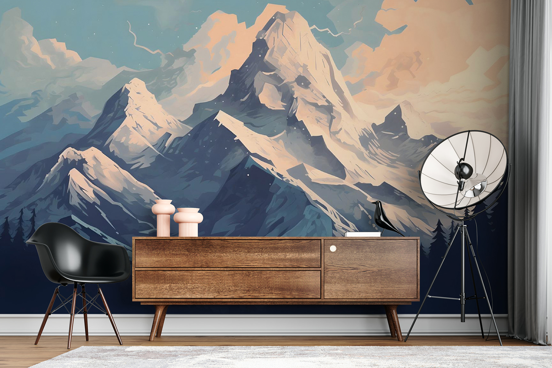 Stellen Sie sich vor, Sie betreten eine gemütliche Hütte, der Duft von Kiefernholz liegt in der Luft, und da ist es – das Wandgemälde mit hoch aufragenden Bergen, eingehüllt in Schneedecken und flauschige Wolken. Dieses Kunstwerk ist nicht nur eine Kulisse, sondern lädt dazu ein, von einem frischen Alpenmorgen und Abenteuern zu träumen, die gleich hinter der Tür warten. Stellen Sie sich vor, Sie schlürfen einen heißen Kakao, während die Welt draußen in Weiß gehüllt ist und Sie nur diese majestätischen Gipfel sehen. Dieses Wandbild eignet sich perfekt für ein Wohnzimmer oder eine Leseecke und bringt die Natur ins Haus, so dass sich jeder Blick wie ein kleiner Ausflug anfühlt. Perfekt für alle, die sich nach einem Hauch von majestätischer Natur sehnen, ohne zu frieren!
