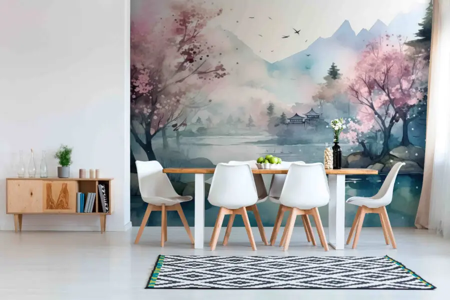 Dieses Wandbild mit dem Titel “Fototapeten Painting of a Tree with Pink Flowers” ist wie ein Traum. Stellen Sie sich diese Szene an Ihrer Wand vor: ein friedlicher, nebliger Morgen, prächtige rosa Blüten, die aufblühen, und ruhige Berge im Hintergrund. Das ist nicht nur Kunst, das ist eine Stimmung. Perfekt für ein Wohnzimmer, ein Schlafzimmer oder sogar ein Büro, das ein wenig Ruhe braucht. Sie werden das Gefühl haben, jeden Tag in einem Märchen aufzuwachen. Und wenn Sie es anstarren, während Sie Ihren Morgenkaffee schlürfen… Glückseligkeit. Und brauchen wir nicht alle ein bisschen mehr Glückseligkeit?