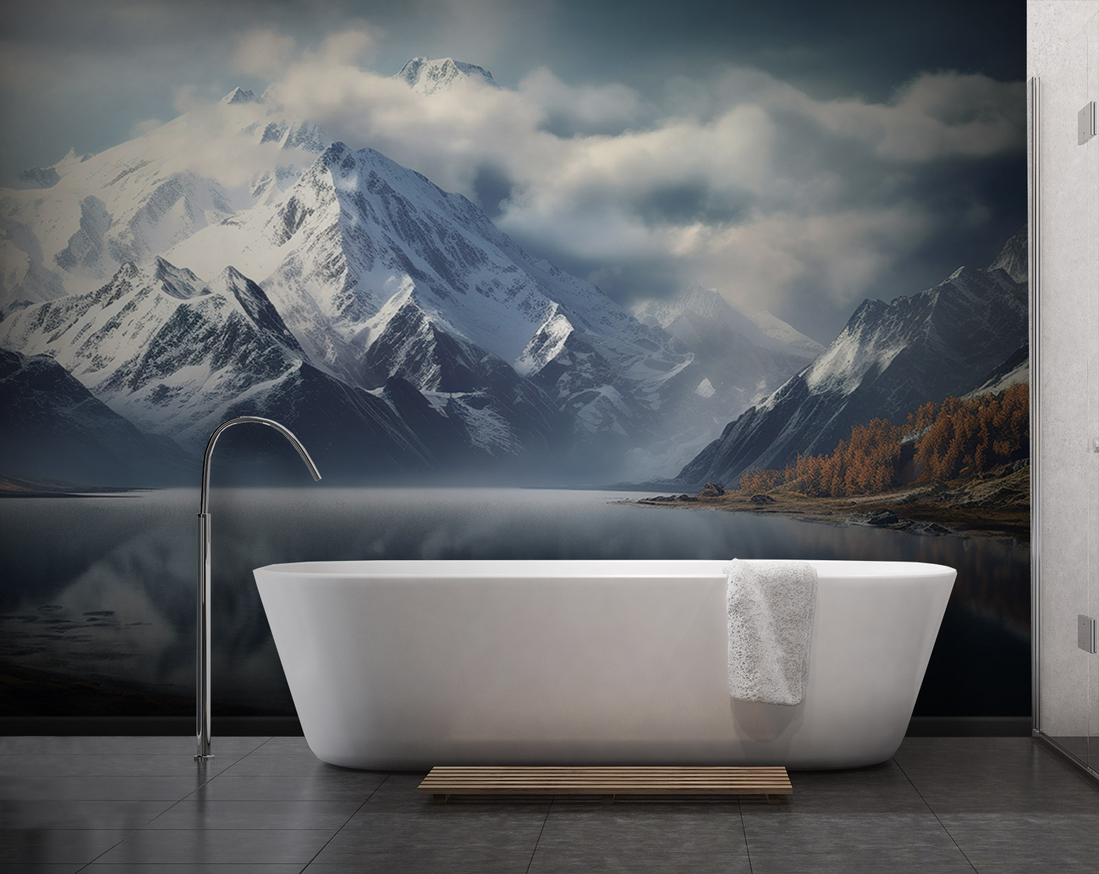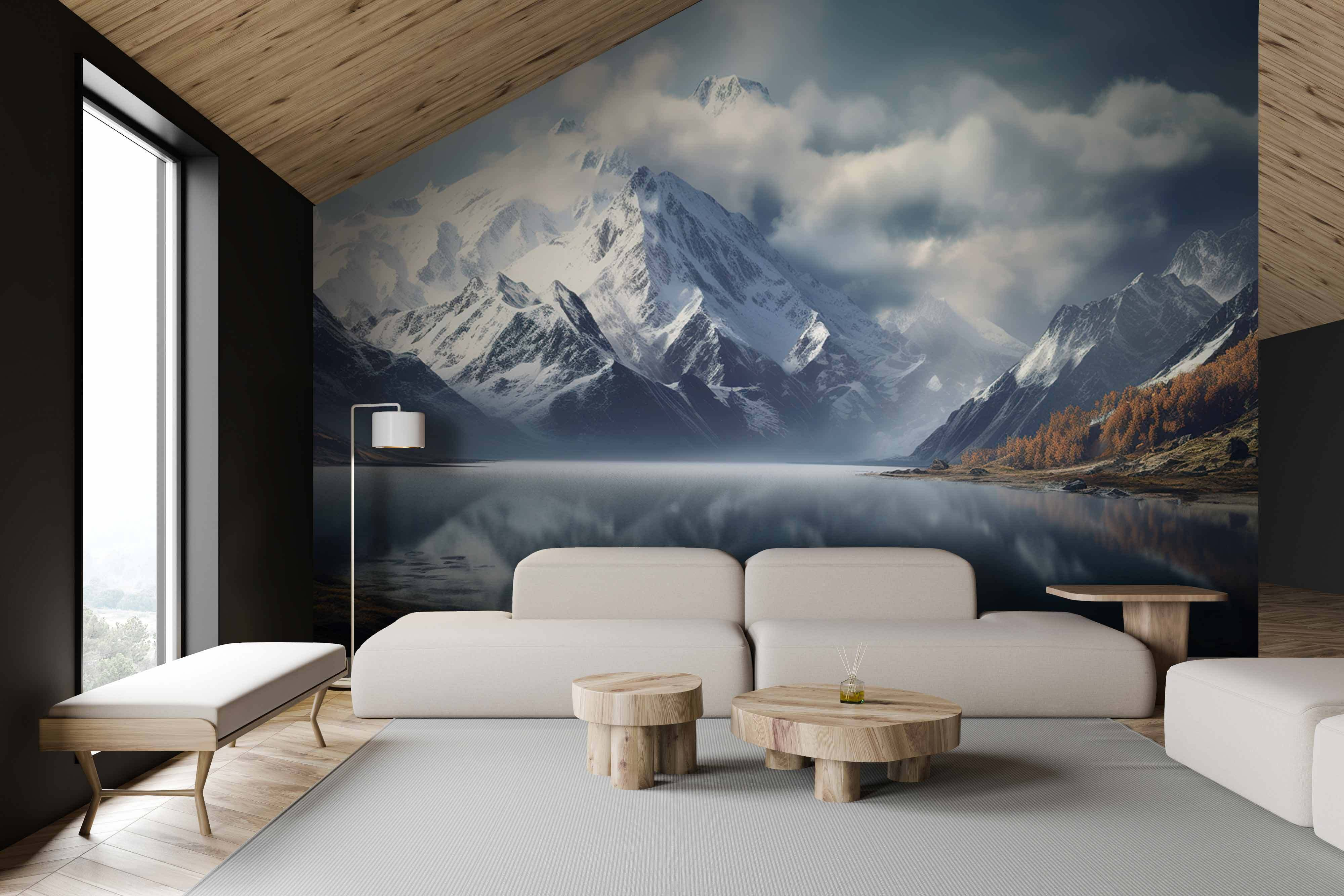 Stellen Sie sich vor, Sie lehnen sich auf Ihrer Couch zurück, haben eine Tasse mit etwas Warmem in der Hand und verlieren sich in der heiteren Szenerie aus fernen Gipfeln und spiegelndem Wasser. Es ist fast wie ein Mini-Urlaub, ohne dass man einpacken muss – oder einen Sonnenbrand bekommt. Außerdem sorgen die herbstlichen Orangetöne der Bäume für den richtigen Hauch von Wärme.