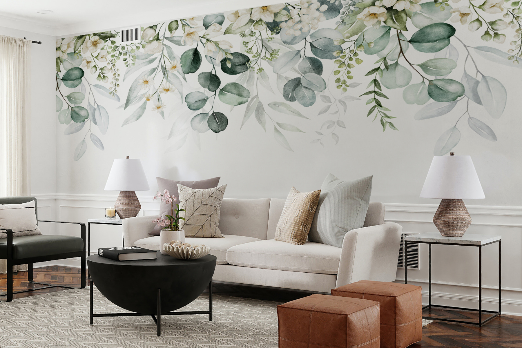 Stellen Sie sich vor, Sie betreten einen Raum, der mit der bezaubernden Eleganz von zarten Blumen und sanften grünen Blättern geschmückt ist. Diese Fototapete verwandelt jeden Raum mühelos in einen ruhigen Rückzugsort. Stellen Sie sich faule Nachmittage vor, die Sie mit einem Buch verbringen, während die sanften Farben Sie in eine beruhigende Umarmung hüllen. Das Wandbild eignet sich perfekt für eine gemütliche Ecke oder einen luftigen Essbereich und bringt erholsame Stimmung und einen Hauch von Natur ins Haus. Freunde werden hereinkommen, und schon wird das Gespräch auf eine wunderbare botanische Reise verlagert. Es ist nicht nur eine Tapete, es ist eine Stimmung. Wer hätte gedacht, dass eine Wand so viel Wärme und Charme ausstrahlen kann?