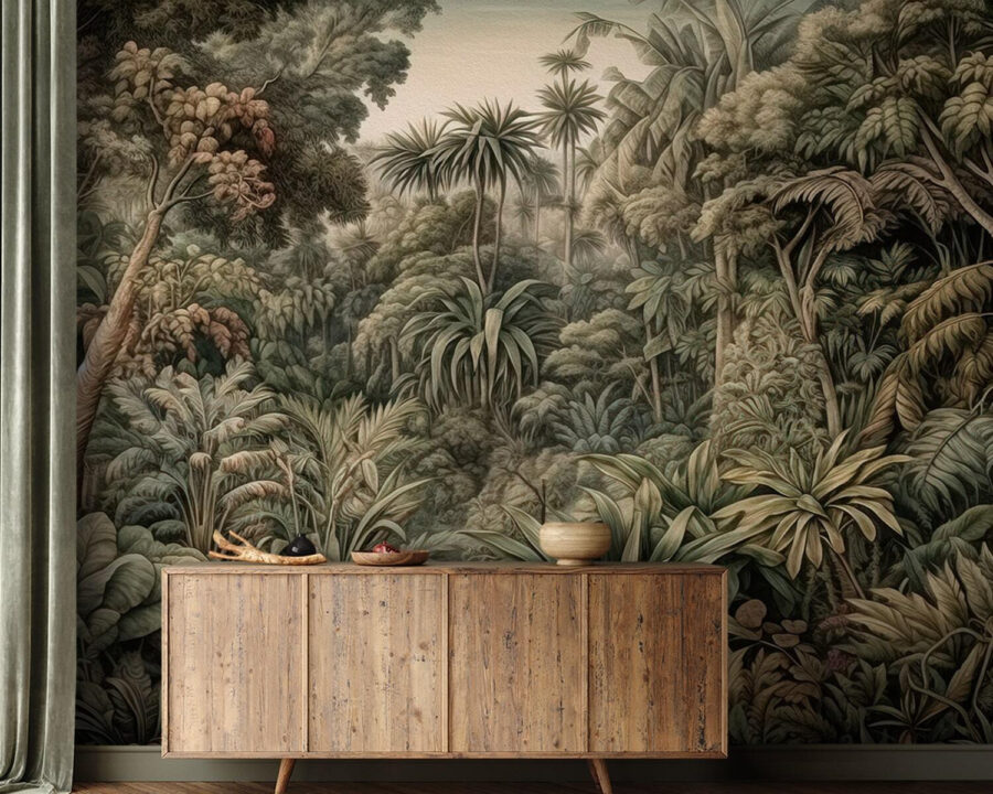 Haben Sie schon einmal davon geträumt, einen Raum in ein üppiges, tropisches Paradies zu verwandeln? Diese Fototapete “Dichter Regenwald” ist genau das Richtige für dich! Es ist, als würde man direkt von seinem Wohnzimmer aus in einen Dschungel eintreten – ziemlich cool, oder? Die verschiedenen Grüntöne und das verschlungene Blattwerk ziehen dich in ihren Bann und geben dir das Gefühl, einen exotischen Regenwald zu erkunden, ohne dass du einen Reisepass brauchst. Stellen Sie sich vor, Sie schlürfen Ihren Morgenkaffee inmitten dieser lebendigen Pflanzenwelt – das ist wie ein täglicher Mini-Urlaub. Perfekt für alle, die sich nach etwas mehr Natur in ihrem Raum sehnen; es ist, als hätte man sein eigenes verstecktes Dschungelrefugium! 🌿🌴🏡