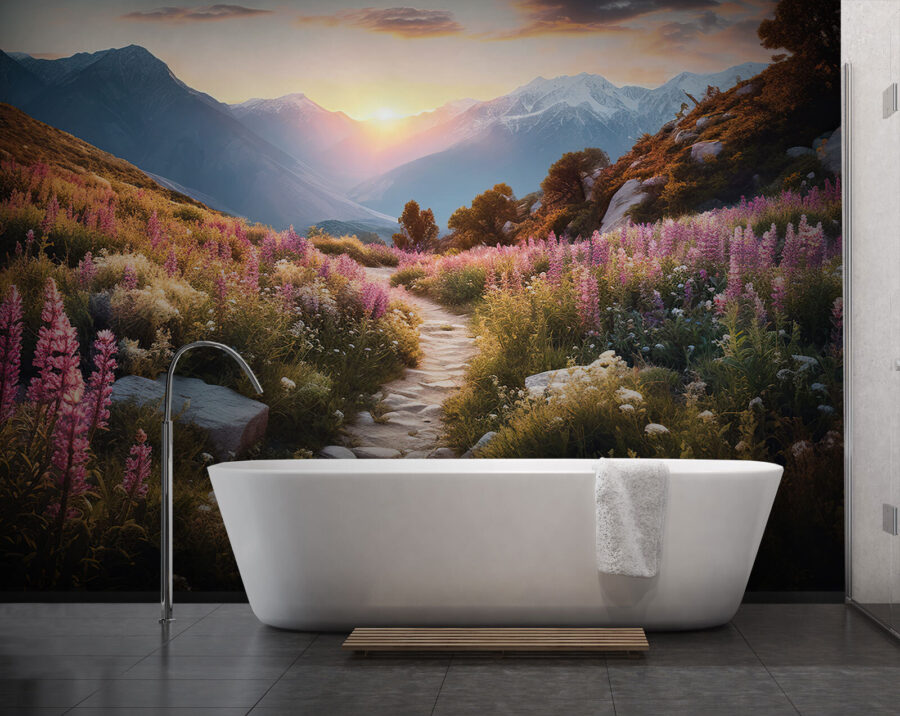 Stellen Sie sich vor, Sie betreten einen Raum und werden von einem bunten Blumenfeld und schroffen Felsen begrüßt – klingt traumhaft, oder? Diese Fototapete macht genau das! Voller lebendiger Blüten und majestätischer Bergansichten ist es wie Ihr eigenes Stück Natur ohne Wanderschuhe. Perfekt, um ein gemütliches Plätzchen zu verschönern oder einem größeren Raum einen Hauch von Abenteuer zu verleihen. Stellen Sie es sich vor: Freunde unterhalten sich, Lachen mischt sich mit Ihrer Flucht in die Natur. Es ist nicht nur Dekoration, sondern auch eine Stimmung, ein Gesprächsanlass und eine kleine Erinnerung an die Schönheit der Natur. Wer würde sich das nicht wünschen?
