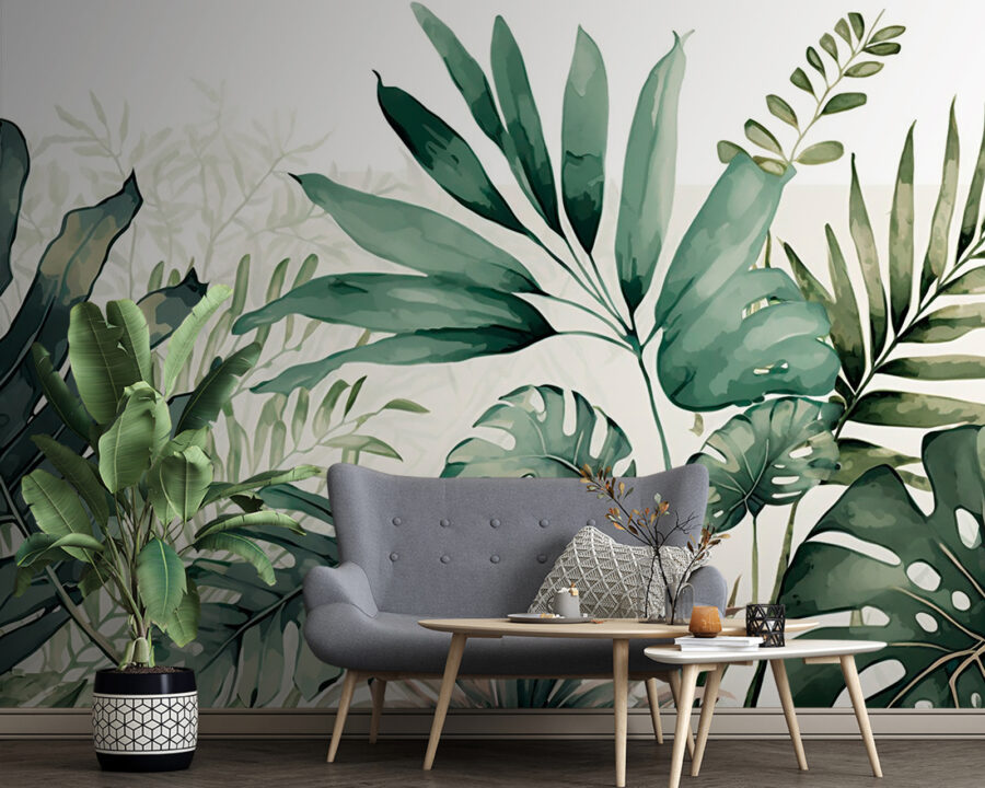 Stellen Sie sich vor, Sie wachen mit diesem Anblick auf – üppige, lebendige tropische Blätter, die sich an Ihrer Wand ausbreiten und Ihr Schlafzimmer wie ein gemütliches Dschungelversteck erscheinen lassen. Es ist, als ob Sie einen Mini-Urlaub machen, ohne das Haus zu verlassen! Diese Fototapete “Tropical Leaves” ist perfekt für alle, die ein bisschen Natur in ihrem Zimmer lieben. Es eignet sich hervorragend für Räume, in denen Sie eine frische, naturverbundene Atmosphäre schaffen möchten.