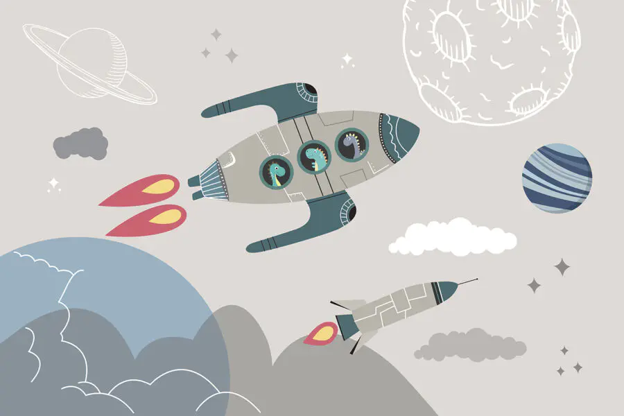 Stell dir das vor: Dinosaurier, die in Raketenschiffen durch den Weltraum sausen! Das ist pure Magie an der Wand! Dieses Wandbild ist perfekt für jedes Kinderzimmer und regt zu endlosen Abenteuern und wilder Fantasie an. Denken Sie an Gute-Nacht-Geschichten über T-Rex-Astronauten und Dino-Mondlandungen. Das Leuchten in den Augen Ihrer Kleinen, wenn sie es sehen, ist unbezahlbar. Die Farben sind sanft und einnehmend und schaffen eine gemütliche und doch erheiternde Atmosphäre. Es ist eine skurrile Mischung aus prähistorischem Charme und cooler Weltraumatmosphäre. Ideal für kleine Träumer und zukünftige Entdecker. Bettzeit mit Raketenantrieb? Ja, bitte!