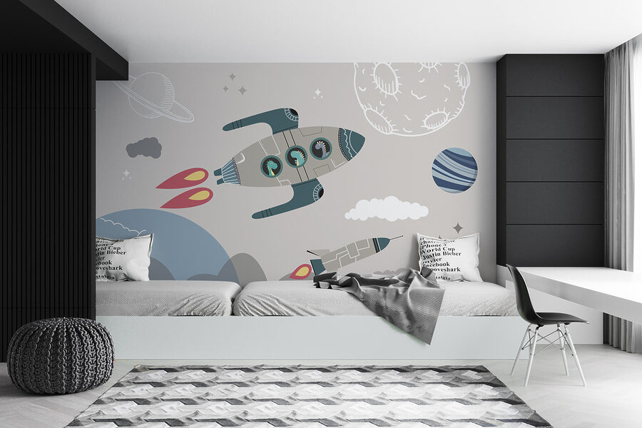Stell dir das vor: Dinosaurier, die in Raketenschiffen durch den Weltraum sausen! Das ist pure Magie an der Wand! Dieses Wandbild ist perfekt für jedes Kinderzimmer und regt zu endlosen Abenteuern und wilder Fantasie an. Denken Sie an Gute-Nacht-Geschichten über T-Rex-Astronauten und Dino-Mondlandungen. Das Leuchten in den Augen Ihrer Kleinen, wenn sie es sehen, ist unbezahlbar. Die Farben sind sanft und einnehmend und schaffen eine gemütliche und doch erheiternde Atmosphäre. Es ist eine skurrile Mischung aus prähistorischem Charme und cooler Weltraumatmosphäre. Ideal für kleine Träumer und zukünftige Entdecker. Bettzeit mit Raketenantrieb? Ja, bitte!