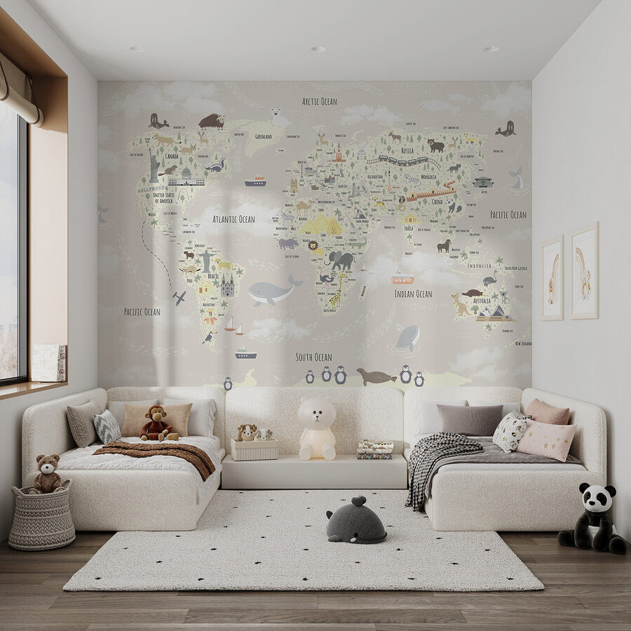 Verwandeln Sie jedes Zimmer in eine kleine Abenteuerzone mit dieser bezaubernden Wandtapete der Welt. Es ist nicht irgendeine Karte, sondern ein farbenfroher Wandteppich mit Ländern, verspielten Tieren und skurrilen Details, die die Neugierde von Kindern und Erwachsenen gleichermaßen wecken können. Stellen Sie sich das Kichern vor, wenn kleine Entdecker ihre Lieblingsorte zeigen oder einen frechen Wal vorbeischwimmen sehen. Dieses Wandbild ist mehr als nur Dekoration; es ist ein Gesprächsanlass, ein Lernmittel und ehrlich gesagt, ein gemütlicher Ort für Tagträume. Es eignet sich perfekt für ein Kinderzimmer oder einen verspielten Raum und lädt jeden ein, sich auf eine Weltreise zu begeben, ohne das Haus zu verlassen. Dekorieren muss nicht immer ernst sein, oder? Hängen Sie es einfach auf und beobachten Sie, wie sich die Magie entfaltet!