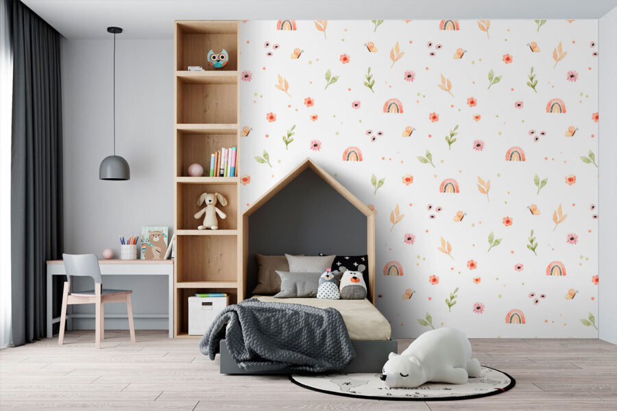 Verwandeln Sie jeden Raum in ein verspieltes Refugium mit diesem skurrilen Naturwandbild mit fröhlichen Regenbögen und zarten Blumen. Stellen Sie sich vor, Sie treten ein – es ist wie eine sanfte Brise frischer Frühlingsluft! Die Kinder werden es lieben, die umherfliegenden Schmetterlinge zu beobachten, während die Eltern vielleicht schon von sonnigen Picknicks träumen. Dieses Wandbild ist nicht nur Dekoration, sondern regt die Fantasie und Freude an. Es eignet sich perfekt für die Zimmer der Kleinen und bringt Wärme und einen Hauch von Magie. Wer würde nicht gerne jeden Tag mit einem Regenbogen aufwachen? Es ist ein herrlicher Farbtupfer, der jeden Raum erhellt!