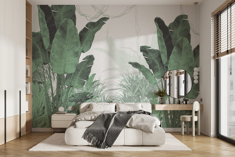 Verwandeln Sie Ihren Raum in eine lebendige Oase mit der Fototapete “Lush Greenery”. Stellen Sie sich üppiges, tropisches Blattwerk direkt an Ihrer Wand vor – es ist, als würden Sie einen Dschungel betreten, nur ohne die Feuchtigkeit. Diese Fototapete eignet sich perfekt, um jedem Raum einen Hauch von Natur zu verleihen. Das beruhigende Grün der Blätter lässt Sie vergessen, dass Sie sich in einem Raum befinden. Stellen Sie sich vor, Sie schlürfen Ihren Morgenkaffee, umgeben von dieser frischen, grünen Szene.