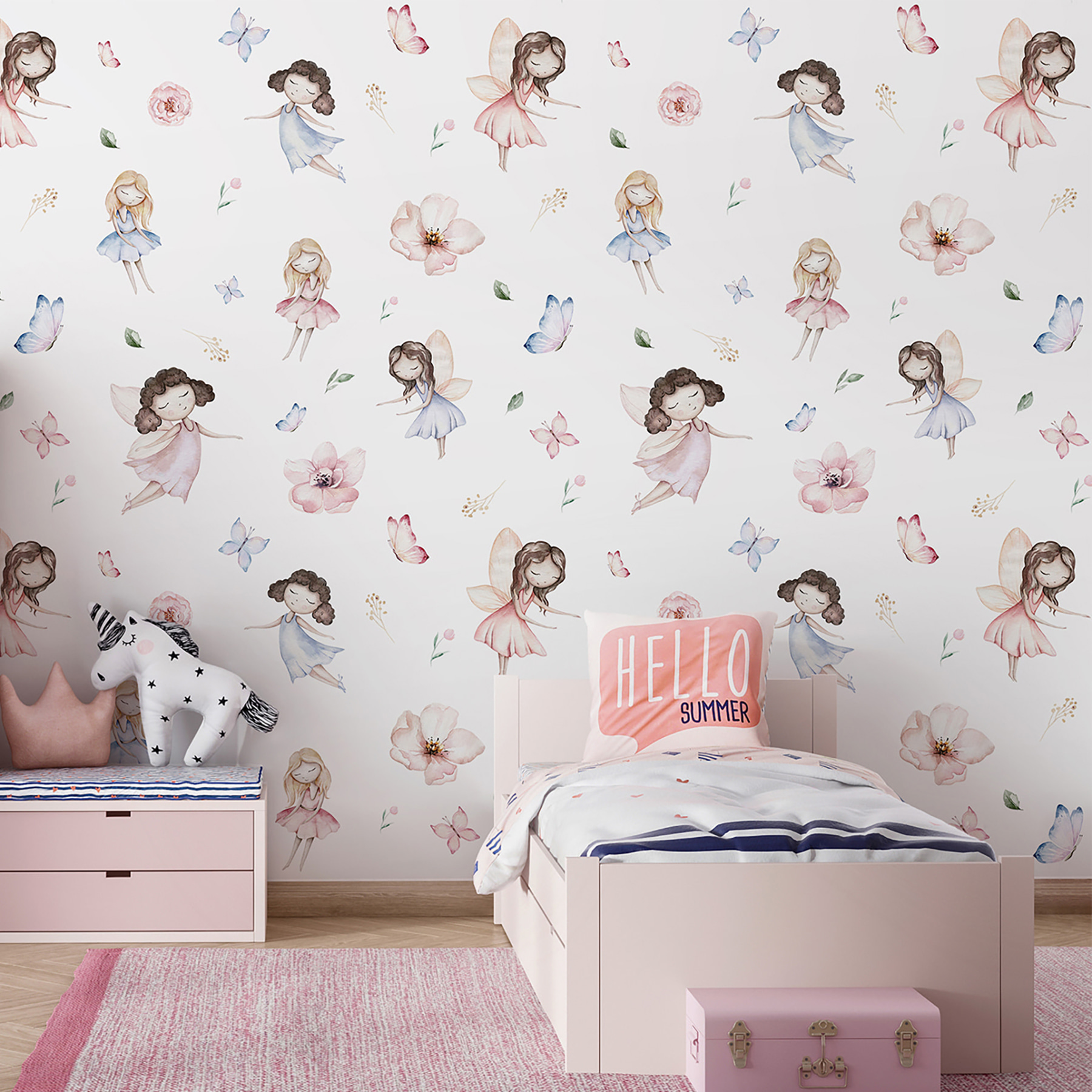 Stellen Sie sich vor, Sie betreten einen Raum und werden von diesem zauberhaften Wandbild begrüßt. Es ist, als würde man in ein wunderliches Märchen eintreten, nicht wahr? Die Fototapete “Drawing of a Girl in a Dress” strotzt nur so vor Charme und Unschuld. Die süßen Illustrationen von Mädchen in hübschen Kleidern, umgeben von flatternden Schmetterlingen und zarten Blumen, sind perfekt für das Zimmer Ihrer Kleinen.