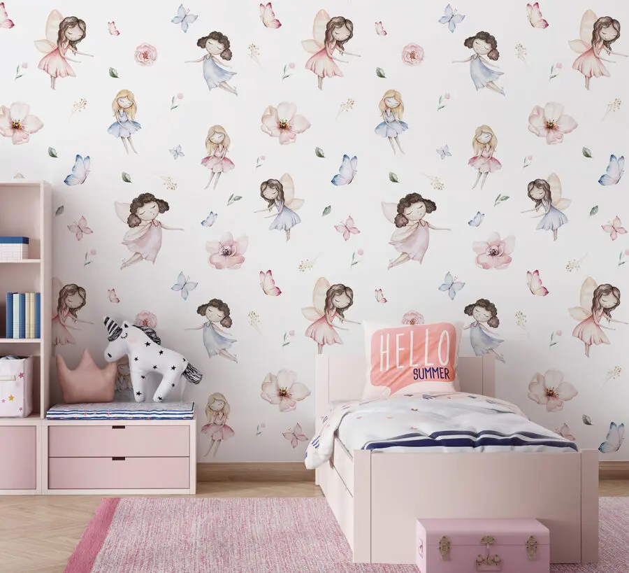 Stellen Sie sich vor, Sie betreten einen Raum und werden von diesem zauberhaften Wandbild begrüßt. Es ist, als würde man in ein wunderliches Märchen eintreten, nicht wahr? Die Fototapete “Drawing of a Girl in a Dress” strotzt nur so vor Charme und Unschuld. Die süßen Illustrationen von Mädchen in hübschen Kleidern, umgeben von flatternden Schmetterlingen und zarten Blumen, sind perfekt für das Zimmer Ihrer Kleinen.